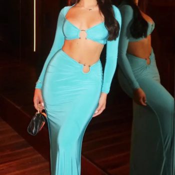Victoria’s Vogue Sexy Skirt Two Piece Sets Women V Neck Long Sleeve T-shirt And Maxi Skirt Femme Metal Buckle Slim Fit Two Piece Sets