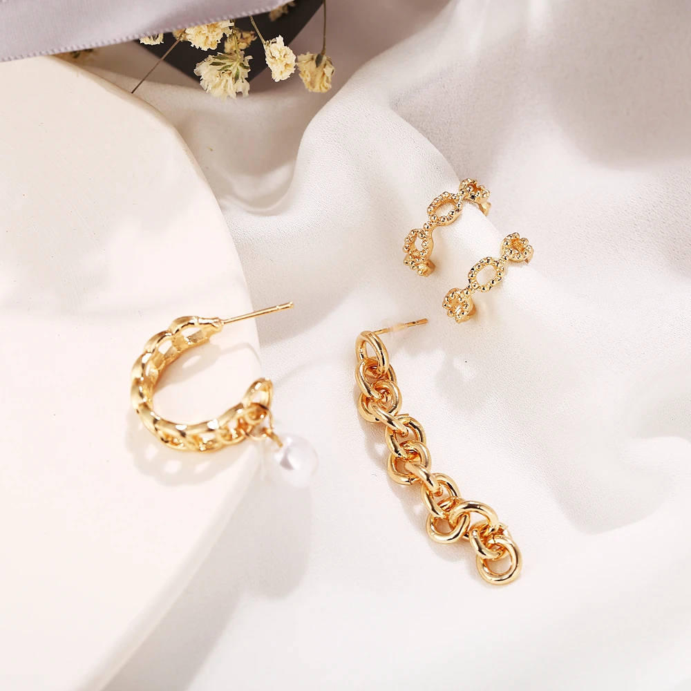 victoria’s vogue 2022 New Vintage Fashion Gold Artificial Pearl Chain Crown Brincos Earrings For Women Boho Earring Jewelry Party Gift Wholesale