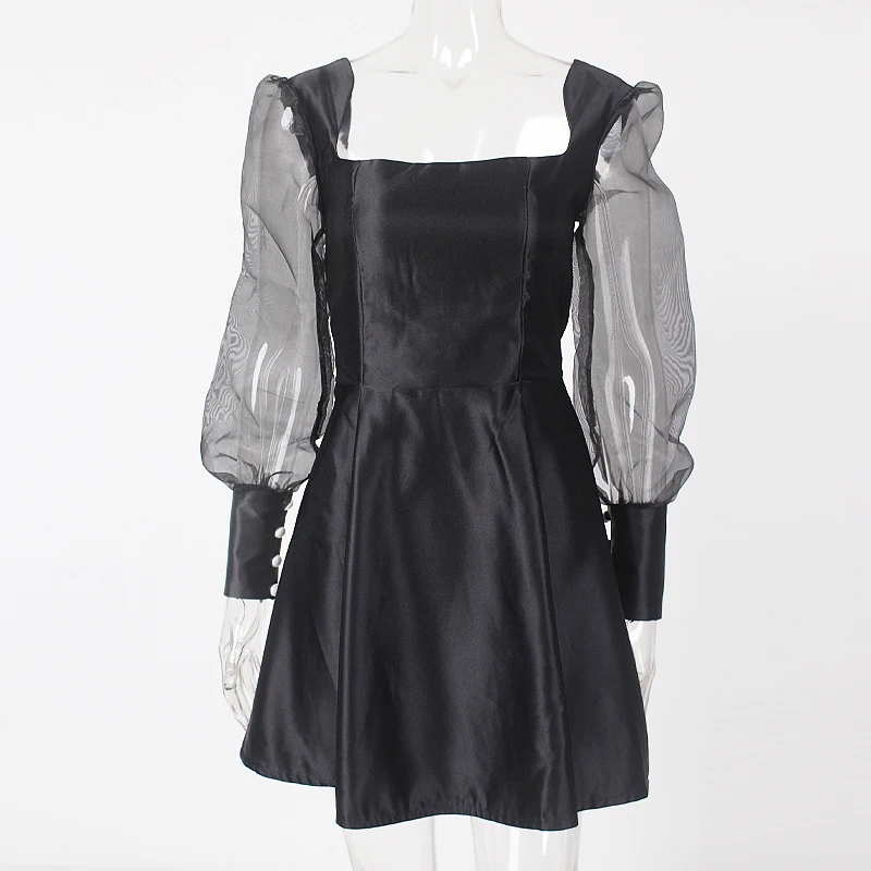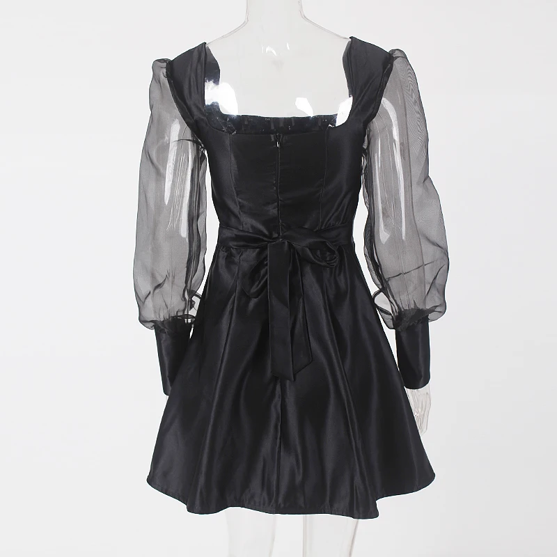 victoria’svogue 2021 Sweetheart Square Neck Pink Mini Dress White Long Sleeve Tight Straps Party Dress
