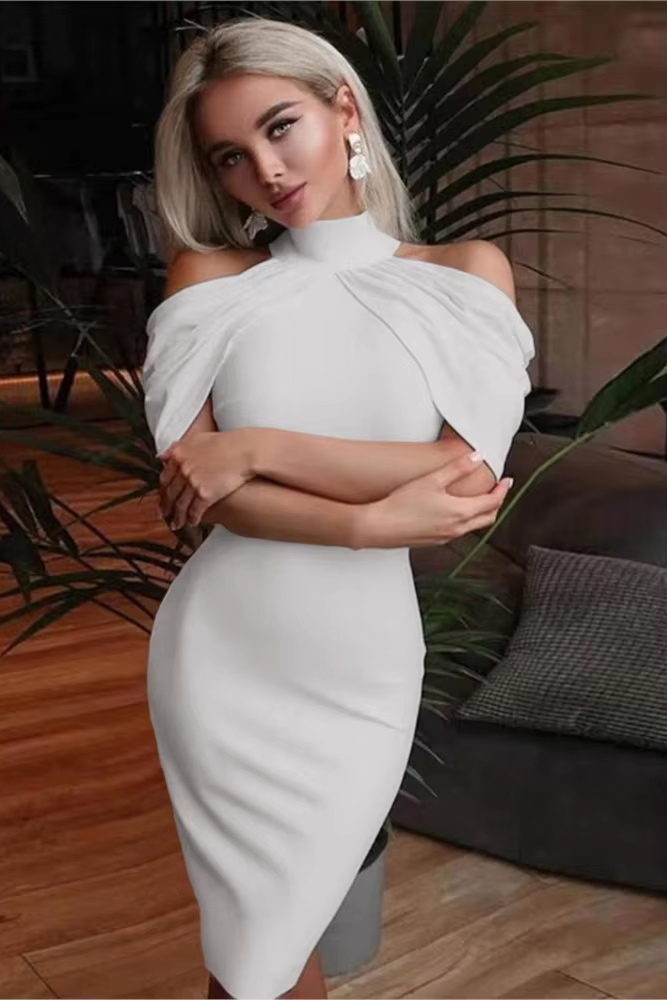 Victoria’s Vogue New Solid Color Slim Midi Dresses Women Halter Neck Off Shoulder Package Hip Bodycon Elegant Temperament Ladies Party Dress