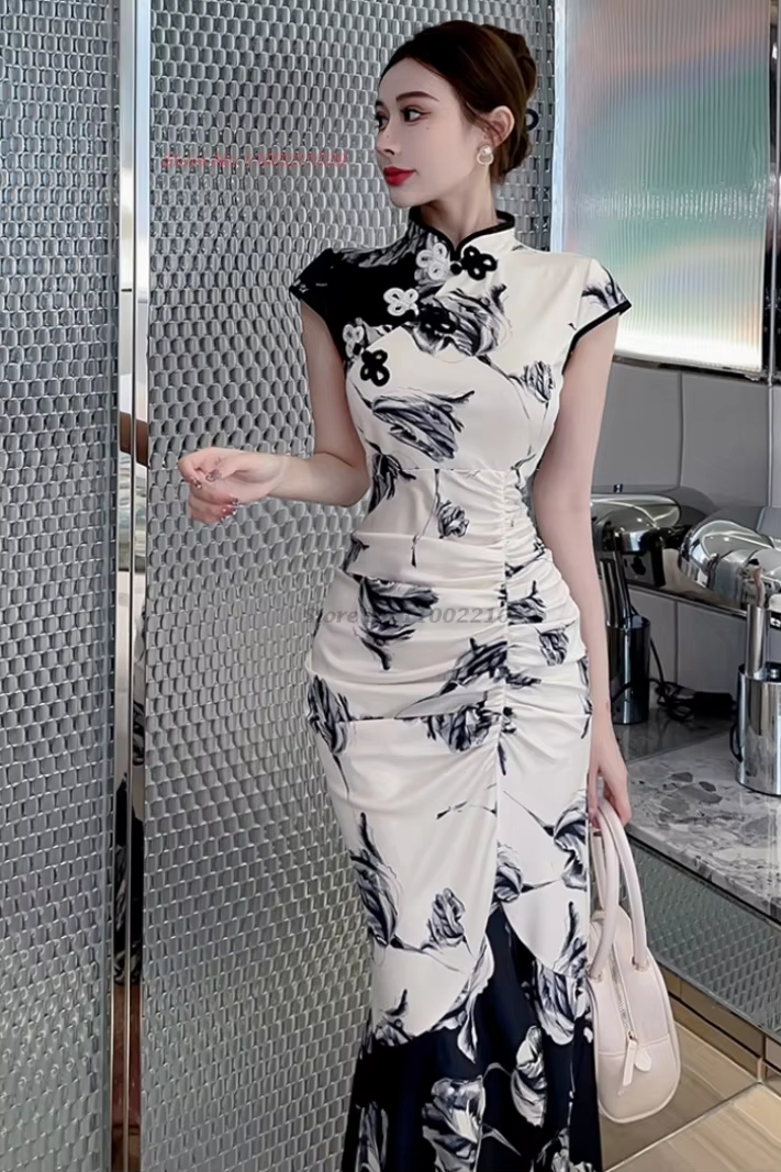 Victoria’s Vouge 2025 chinese vintage dress sleeveless cheongsam flower print party evening dress traditional nightclub qipao sexy dress vestido