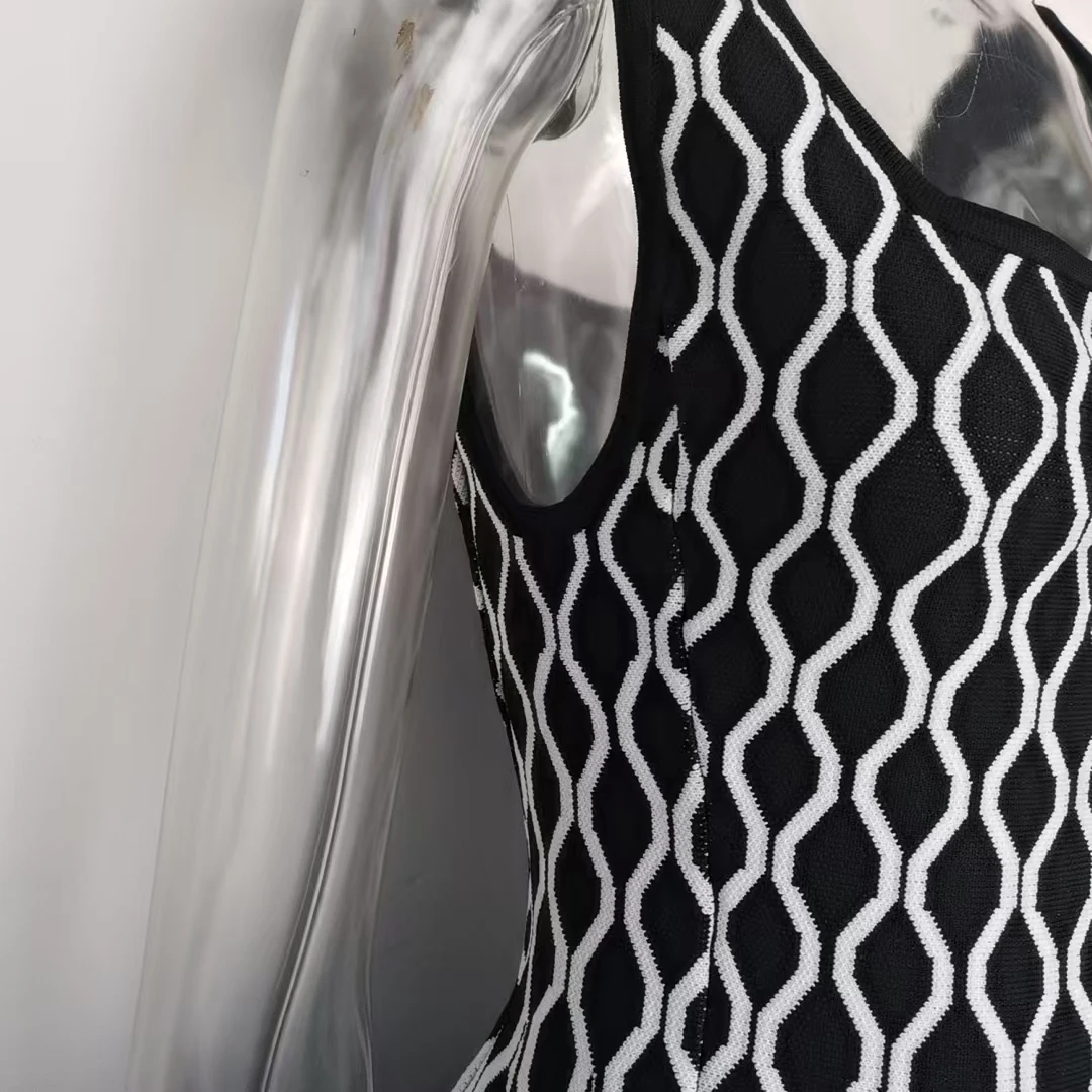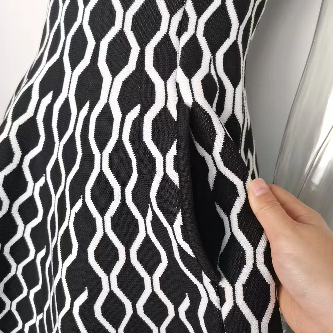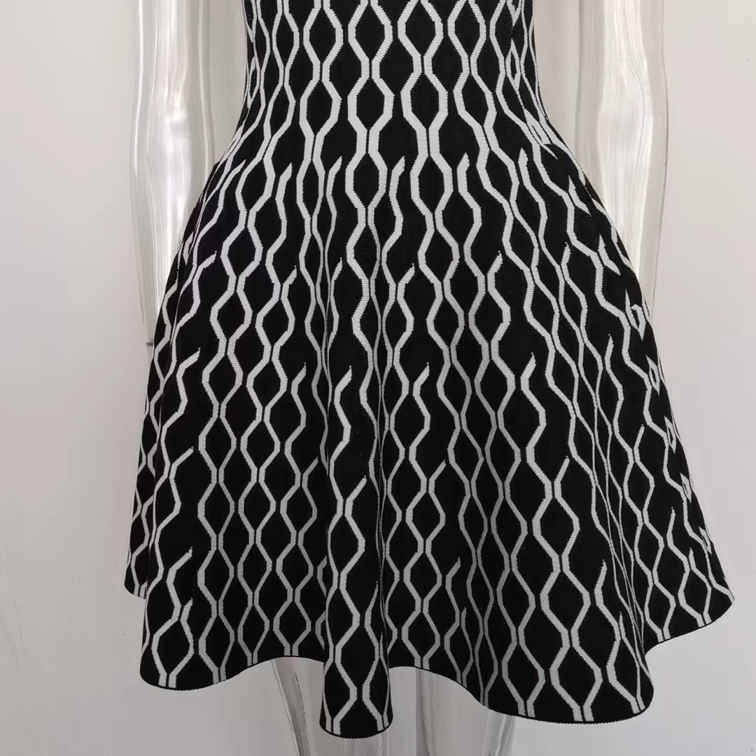 Victoria’s Vouge 2025 High Quality Jacquard Vintage Style Lady Spring Sleeveless Square Collar Wear Women Mini Short Knitted A-line Dress