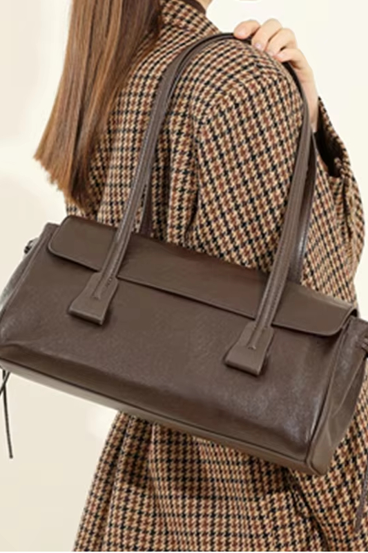 Victori’s Vogue New Genuine Leather Women’s Shoulder Bag Large Capacity Cowhide Luxury Handbag Long Strip Black Baguette Bag Female