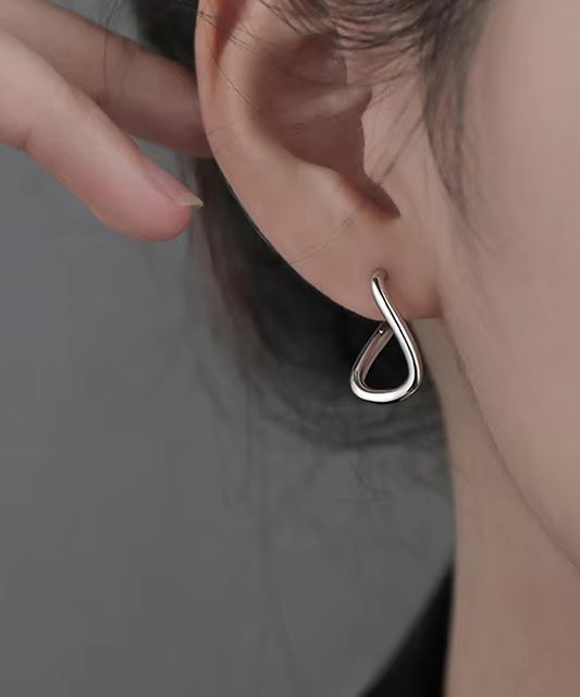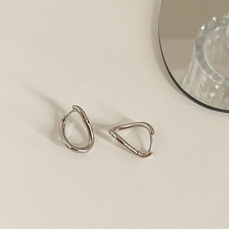 victoria’svogue New Korean Silver Color Hoop Earrings for Women Trend Vintage Geometric Irregular Dislocation Ear Studs Earring Jewelry
