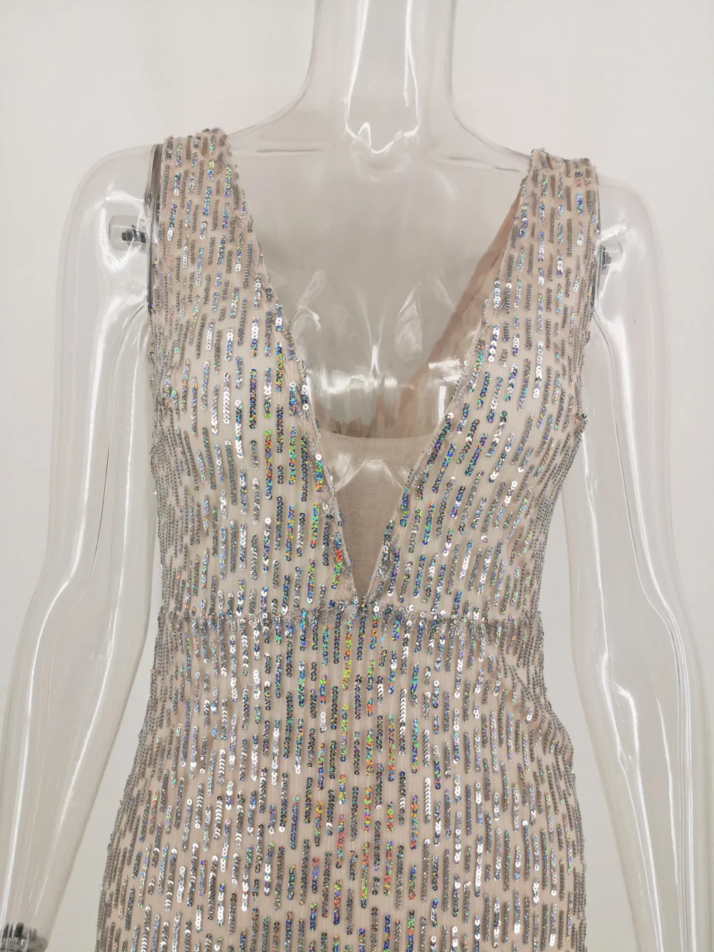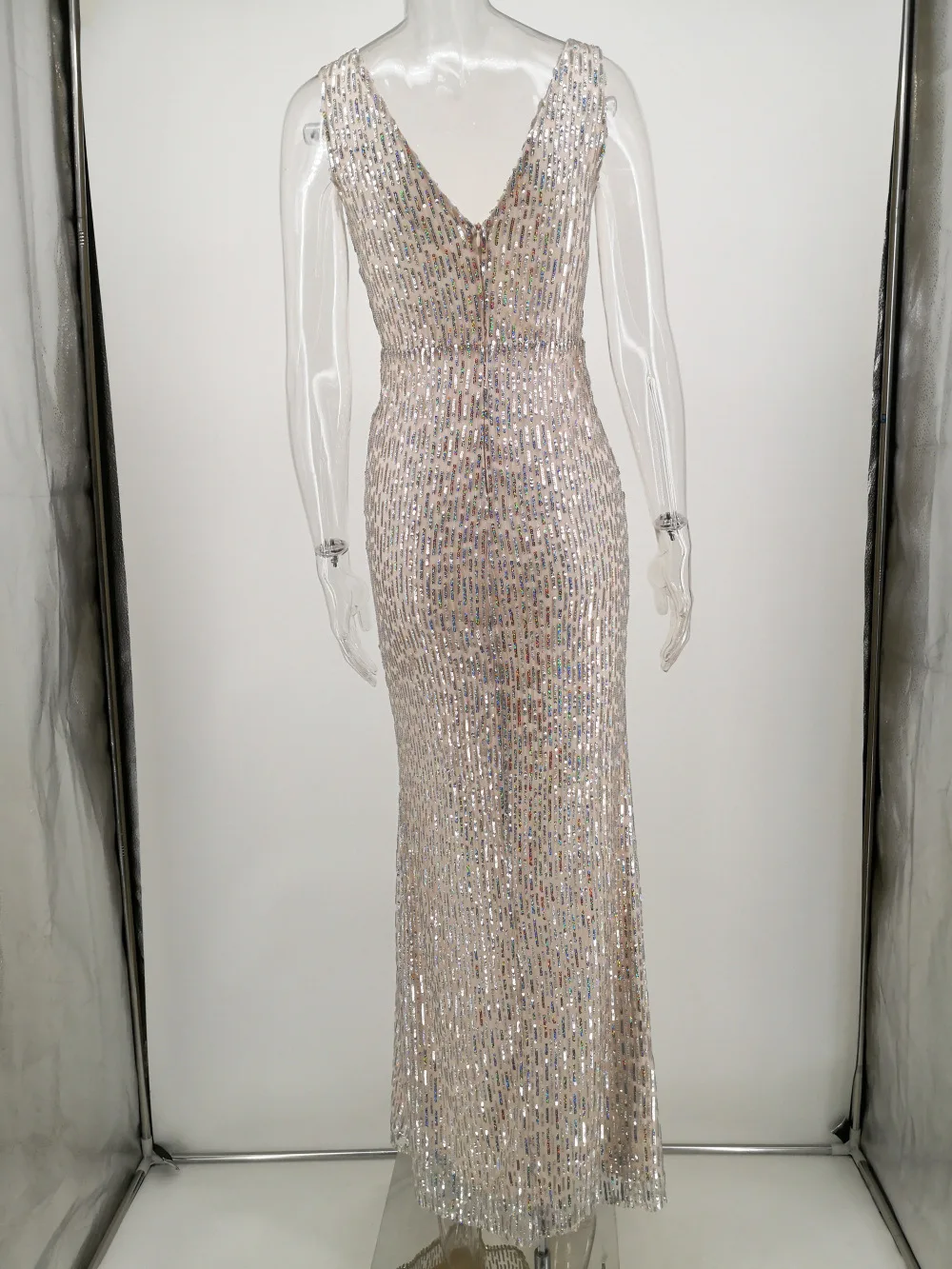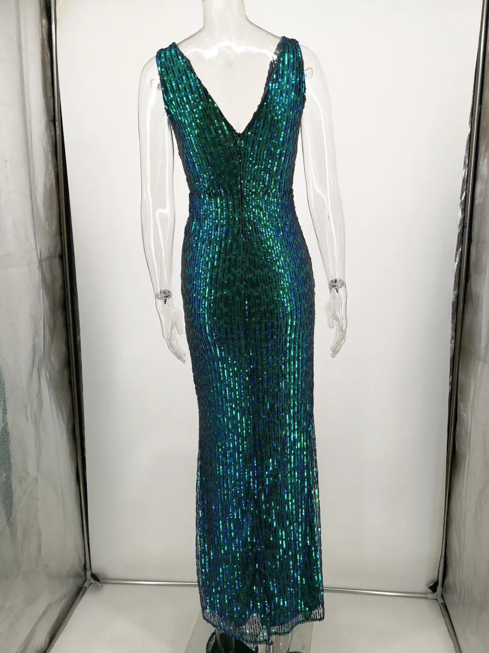 Victoria’s Vogue 2025 New Sexy Slim Sleeveless Retro Sequin Dress European and American Women’s Evening Dress