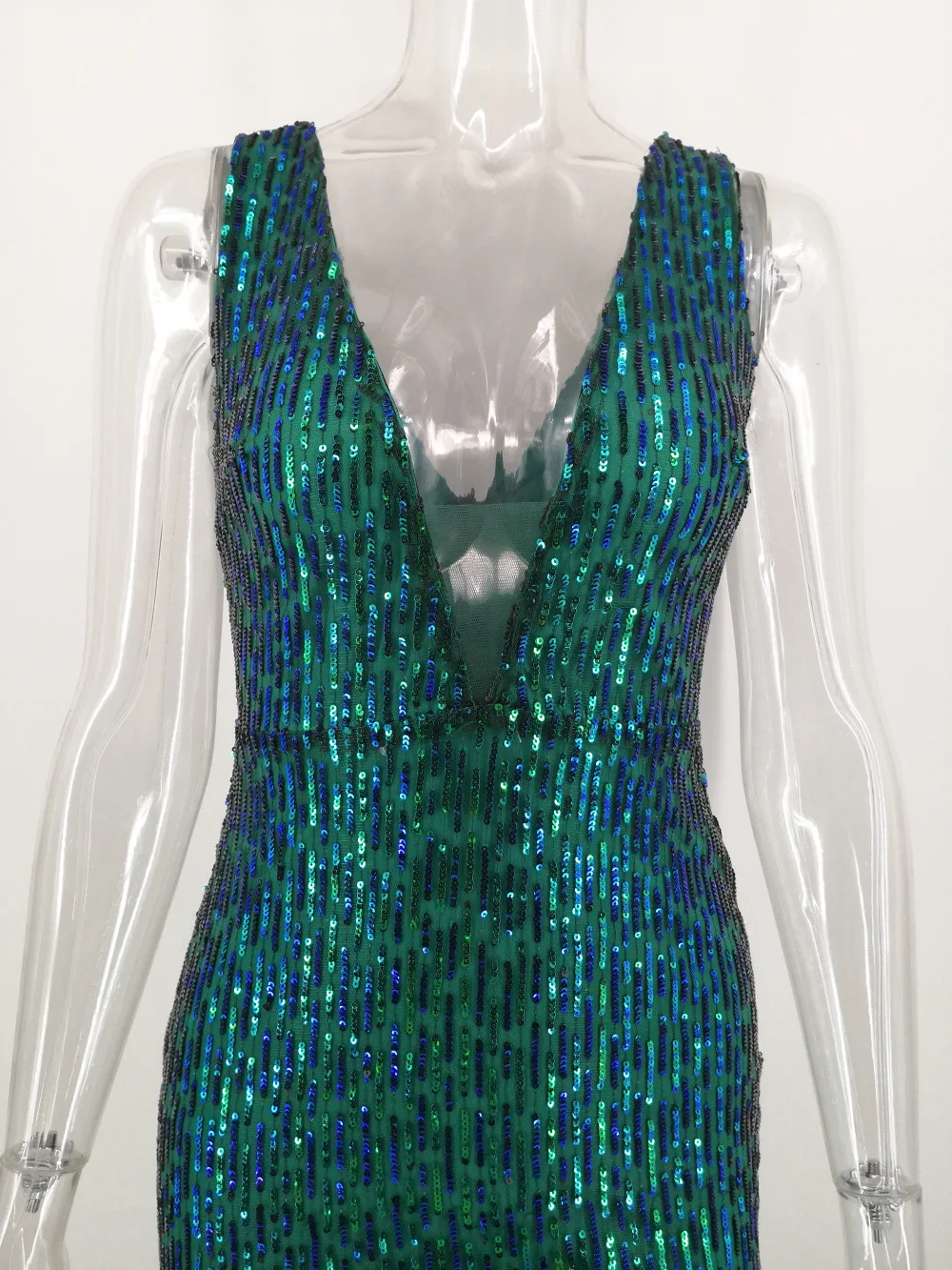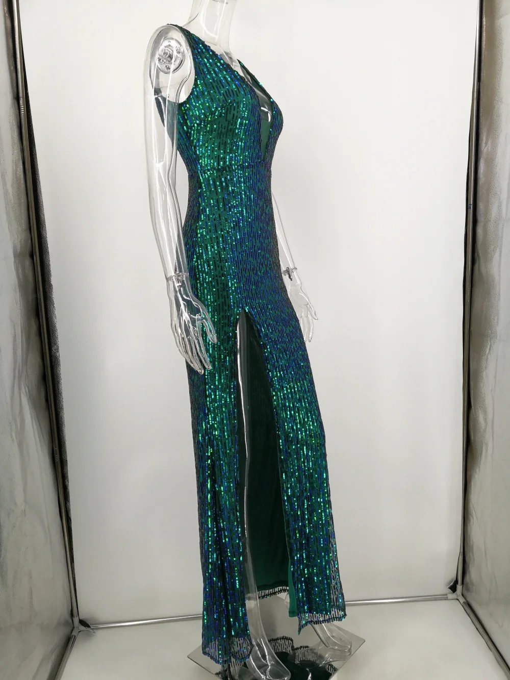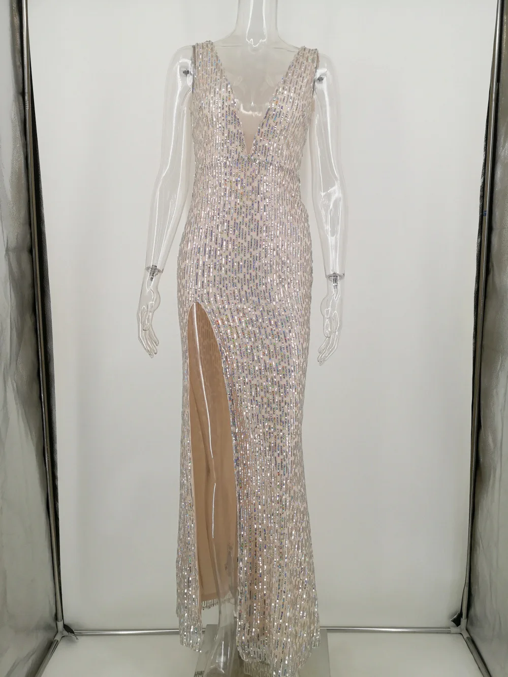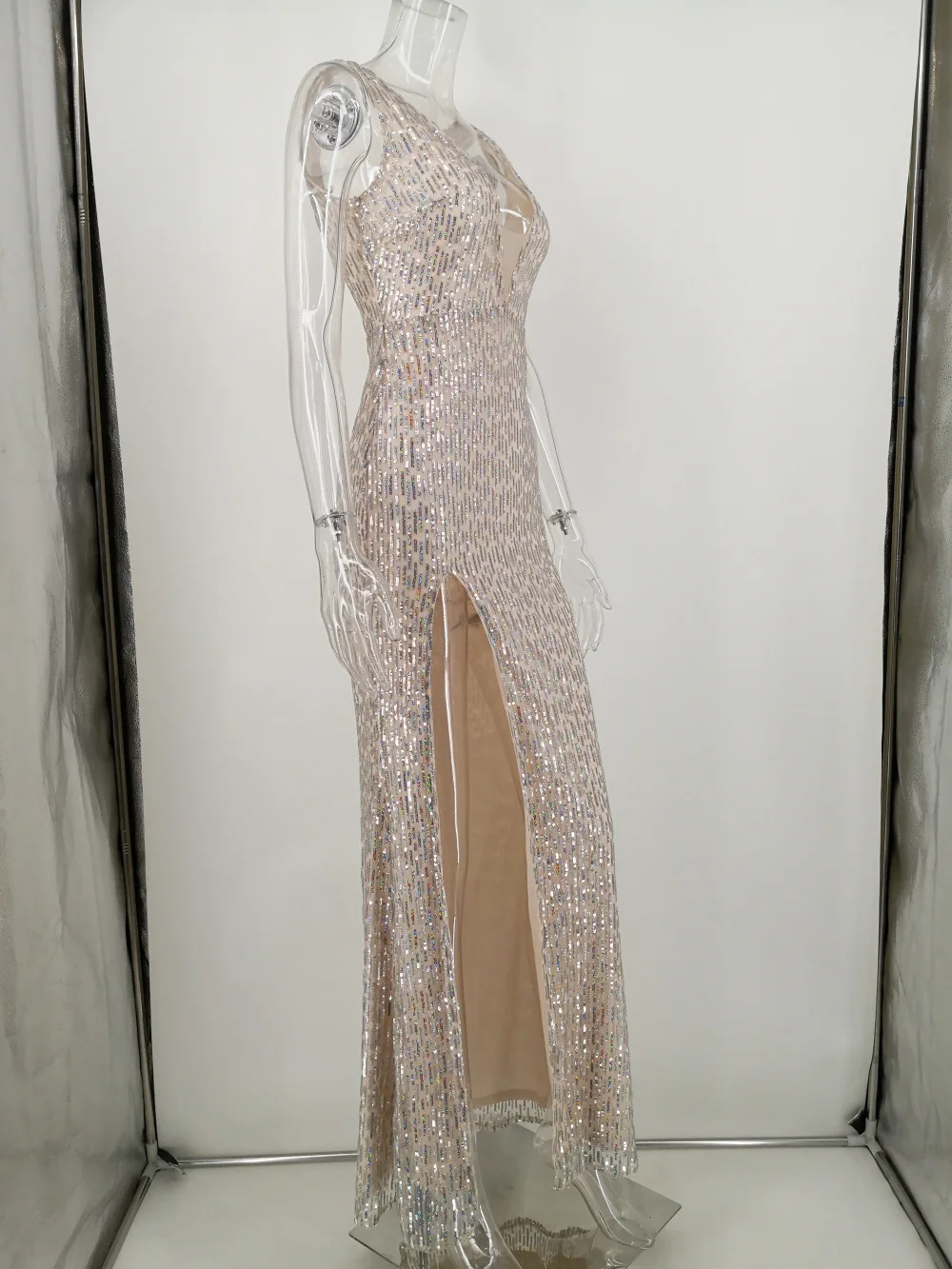 Victoria’s Vogue 2025 New Sexy Slim Sleeveless Retro Sequin Dress European and American Women’s Evening Dress