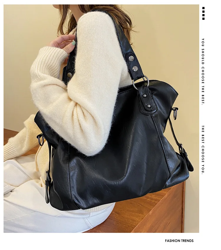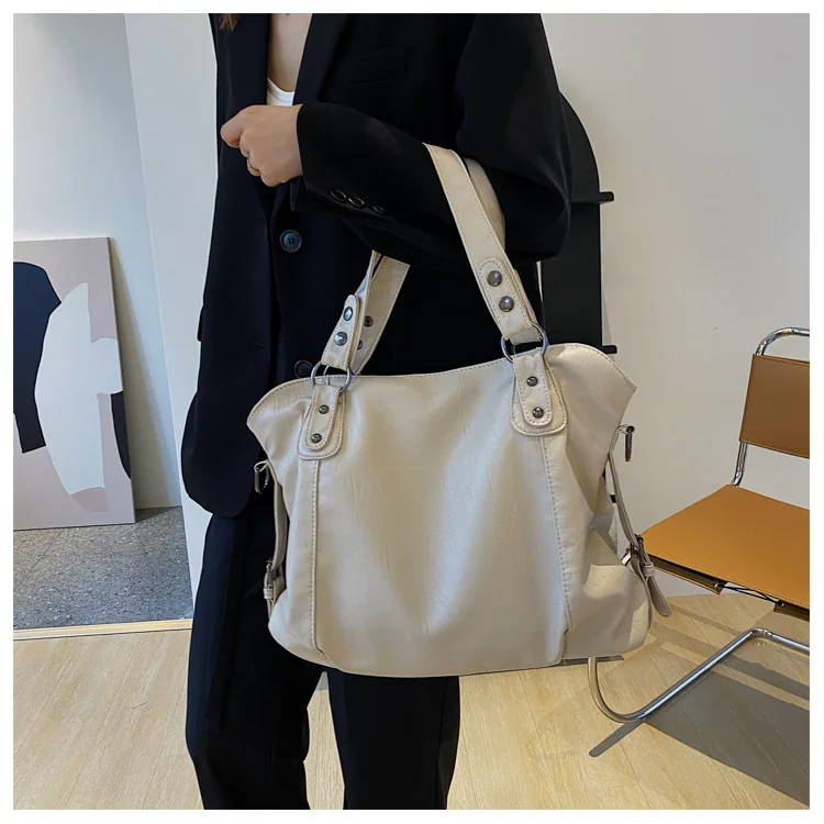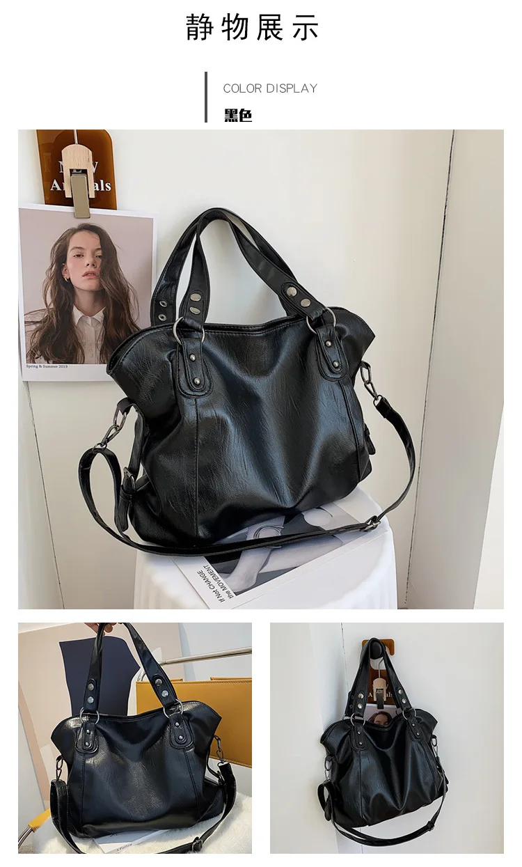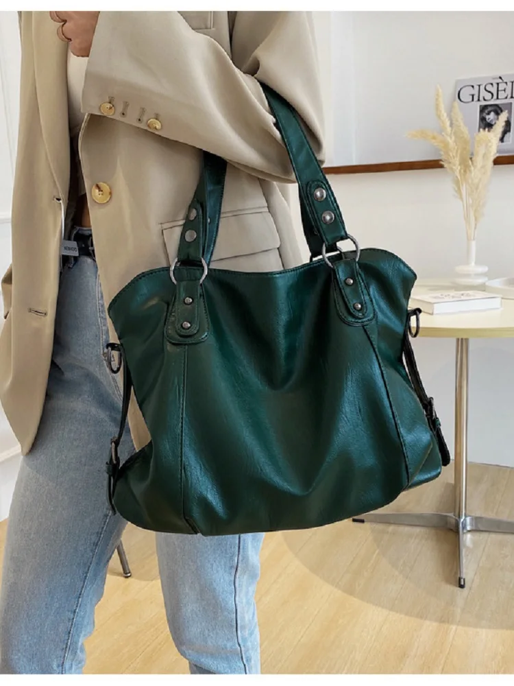 Victoria’s Vogue New Women Tote Bag Soft PU leather Casual Versatile handbag large-capacity E retro elegant commuting single-shoulder bag