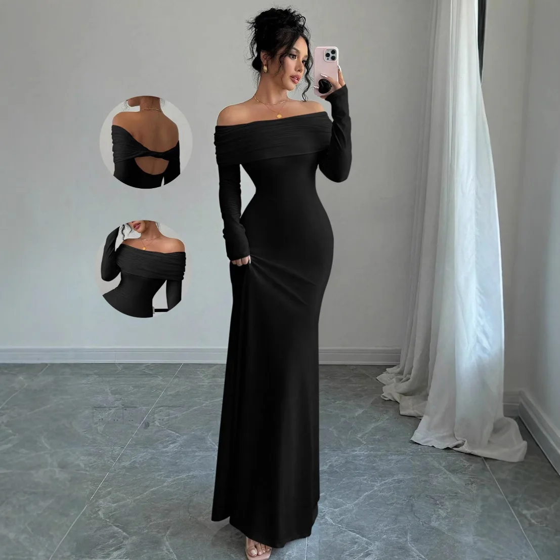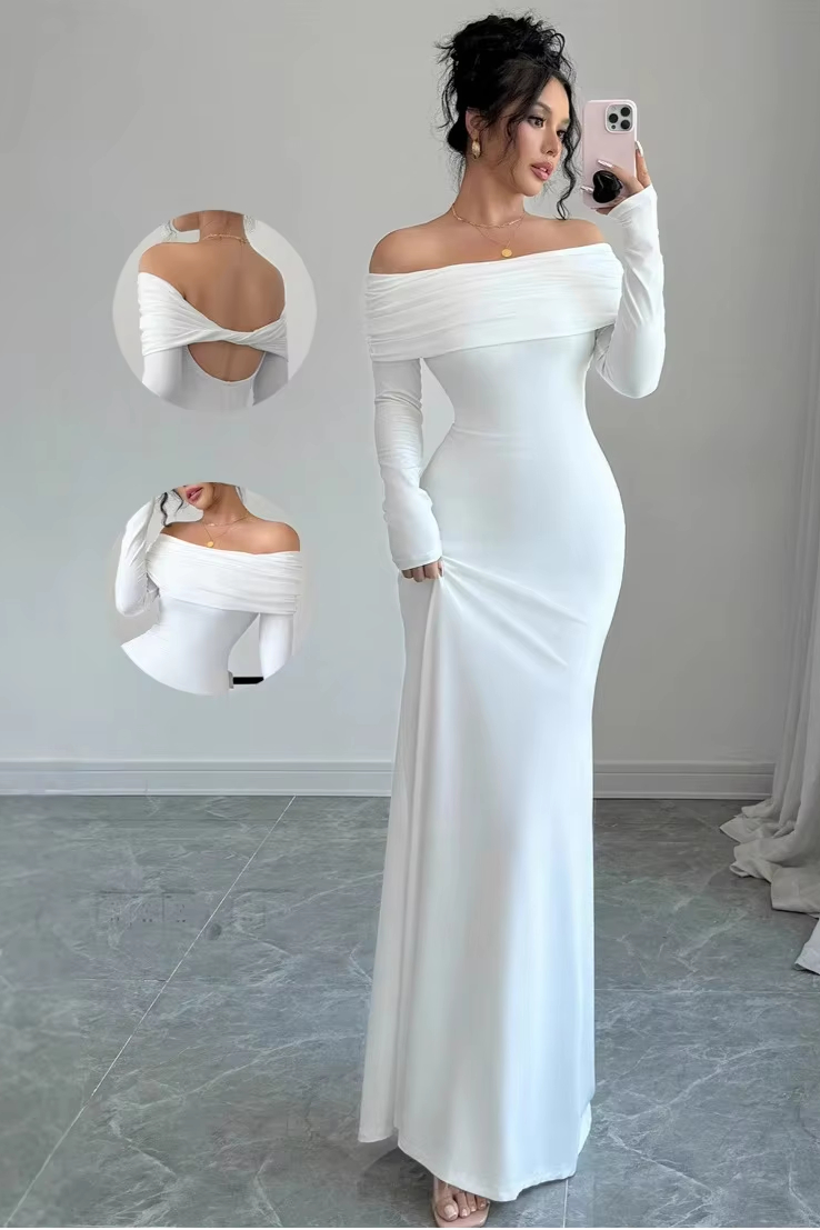 Victoria’s Vogue 2025 Women Fashion White Wedding Dress Spring Autumn One-shoulder Slim Backless Sexy Hip-pack Dresses Women Robe Femal Vestidos