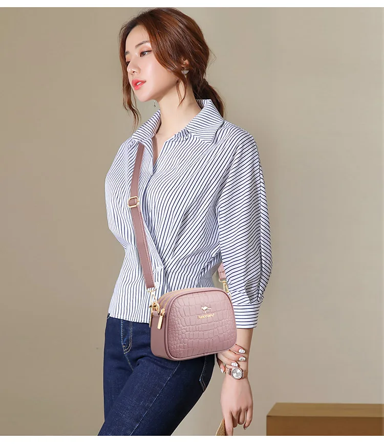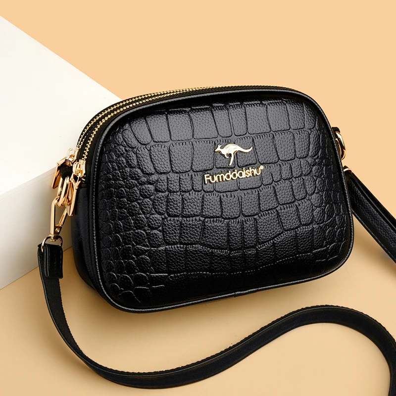 Victoria’s Vogue 3 Layers Zipper Pockets Quality Crocodile PU Leather Women’s Handbags Shoulder CrossBody Bags Light Luxury Female Handbag Sac