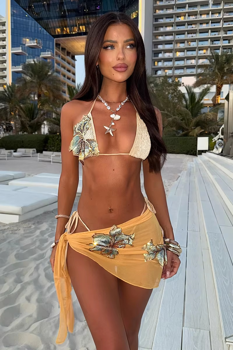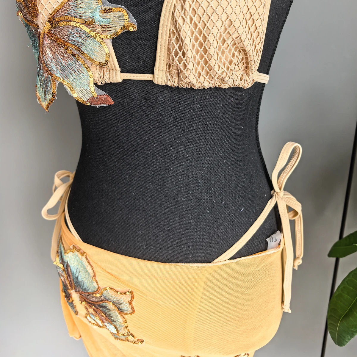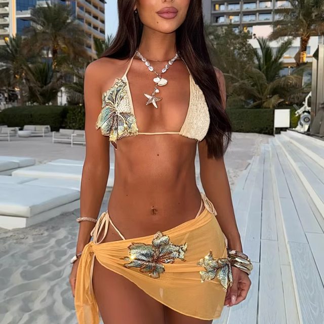 Victoria’s Vogue 3 Pieces Bikini 2025 Sexy Women Swimsuit Swimwear Female Bikini Set Beachwear Bathing Suit Flower Sarong Swimming Suit Cover Ups
