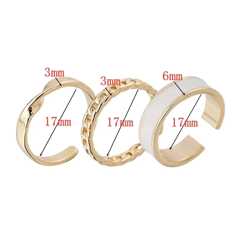 Victoria’s Vogue 3pcs/set Adjustable Open Rings for Women White Green Enamel Oil Twists Weaving Geometry Ring Set Trendy Punk Personality Jewelry