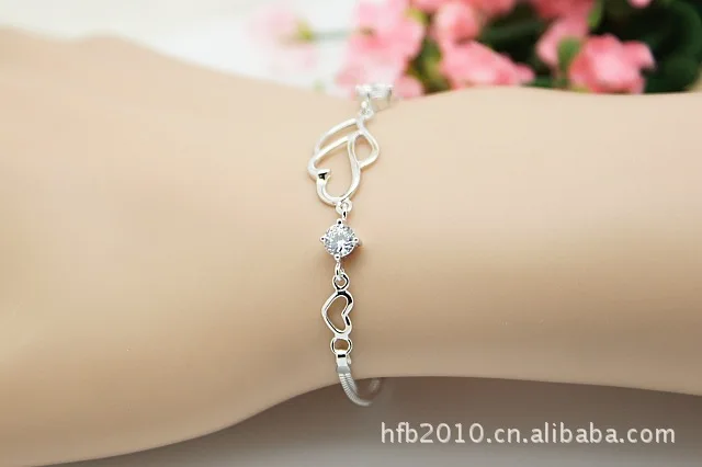 victoria’svogue 925 Slver Bracelet Heart-shaped Bracelet Double Heart Bracelet Korean Silver Jewelry Real Pure 925 Sterling Silver Bracelet 2021