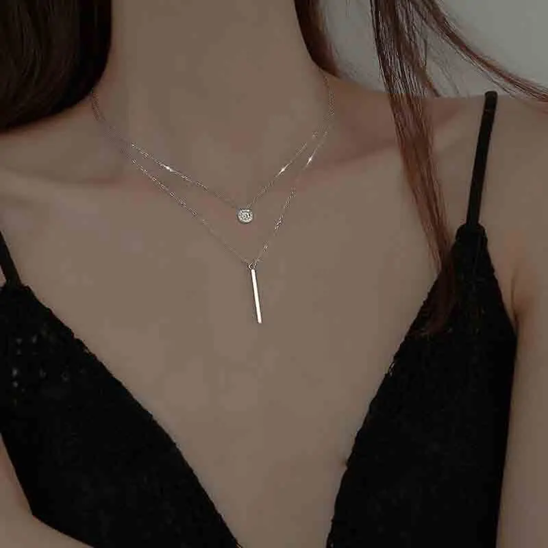victoria’svogue 925 Sterling Silver Square zircon Round Double Necklace Women Clavicle Chain Fine Jewelry Party Wedding Accessories 2021