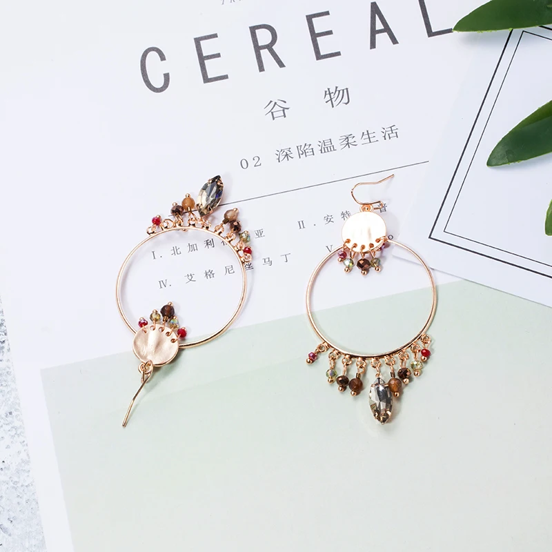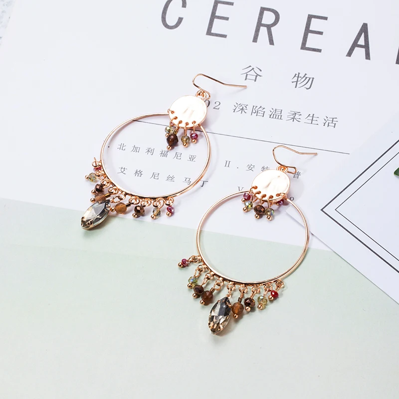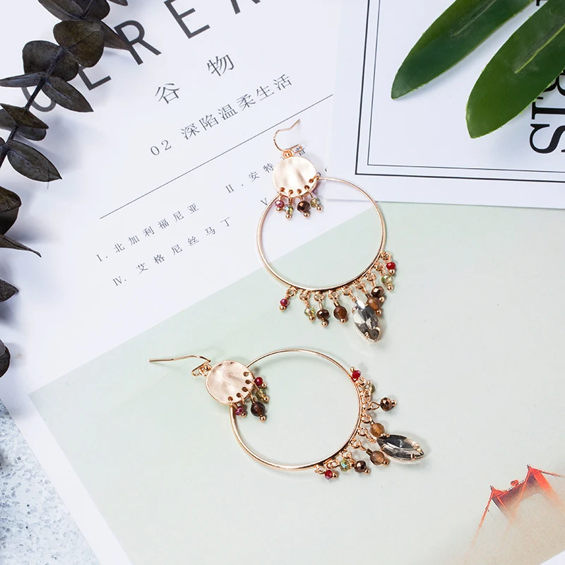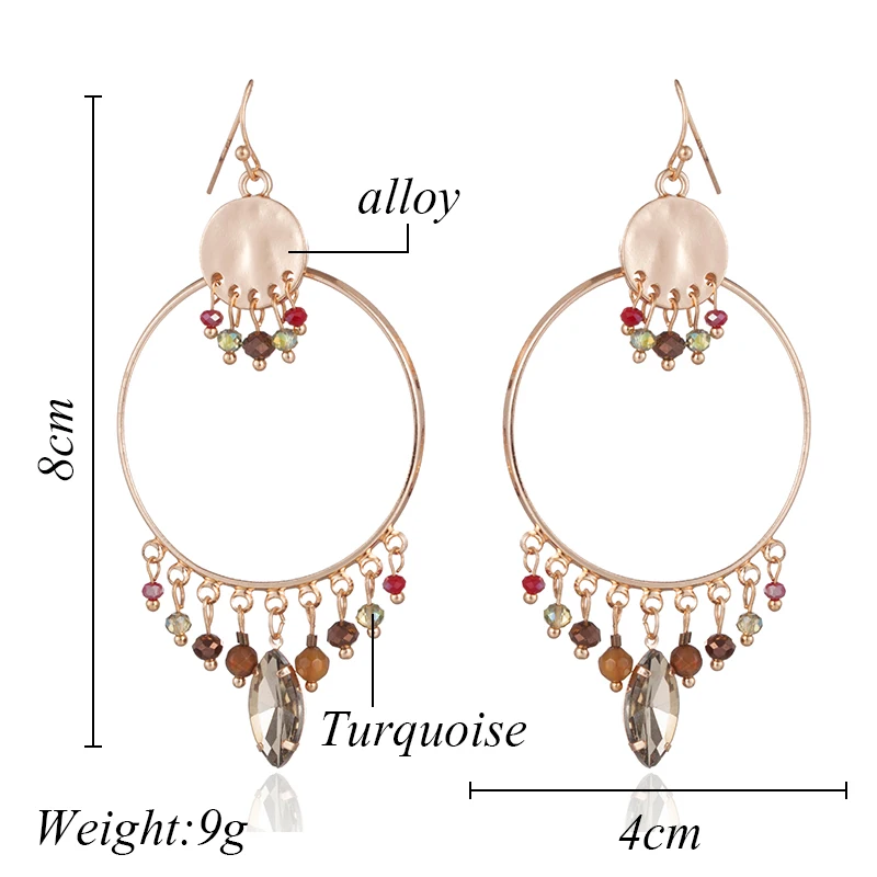 victoria’svogue Acrylic Rhinestone Crystal Beads Golden Big Round Circle Rings Dangle Hanging Drop Earrings for Women Jewelry Accessories Gifts