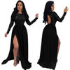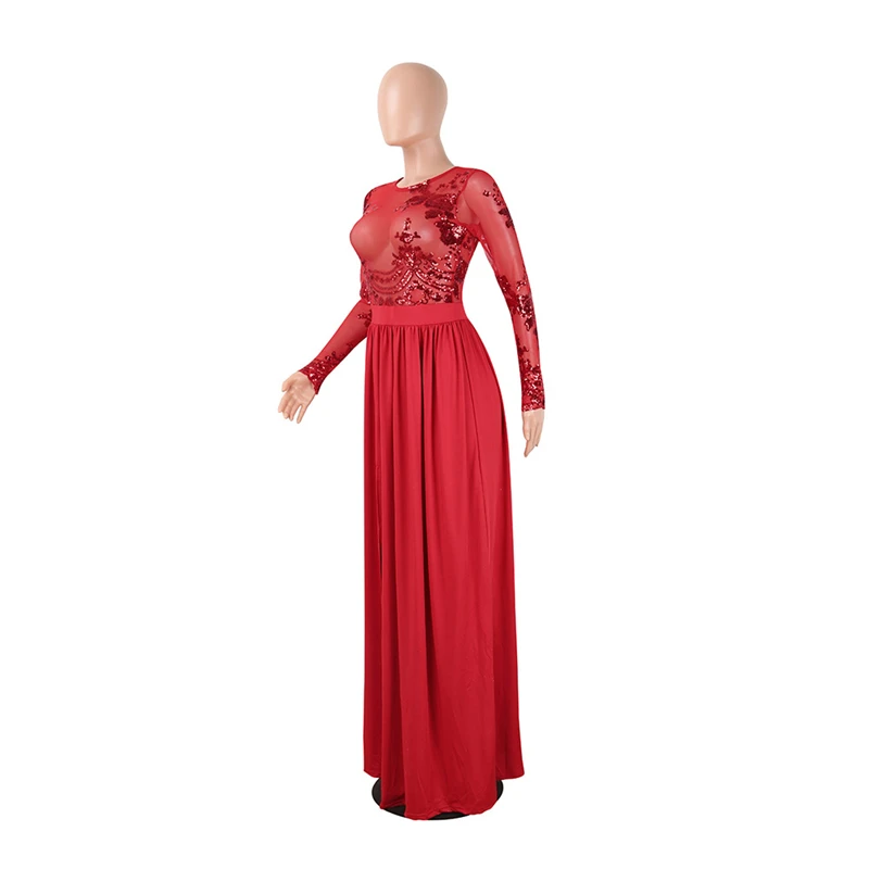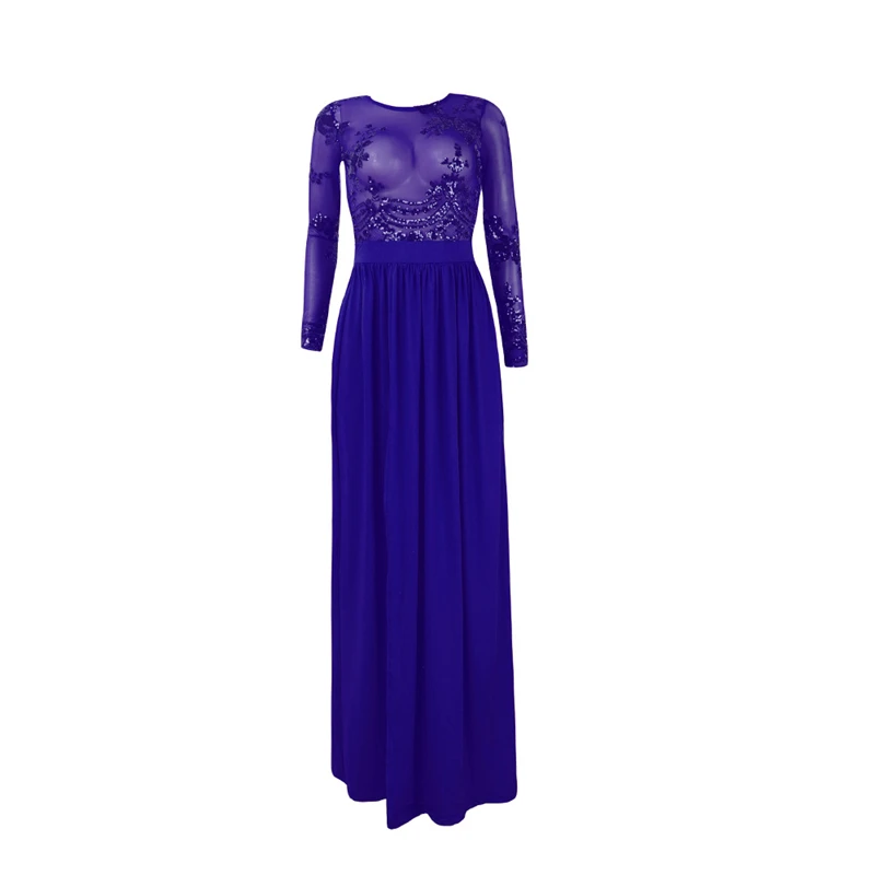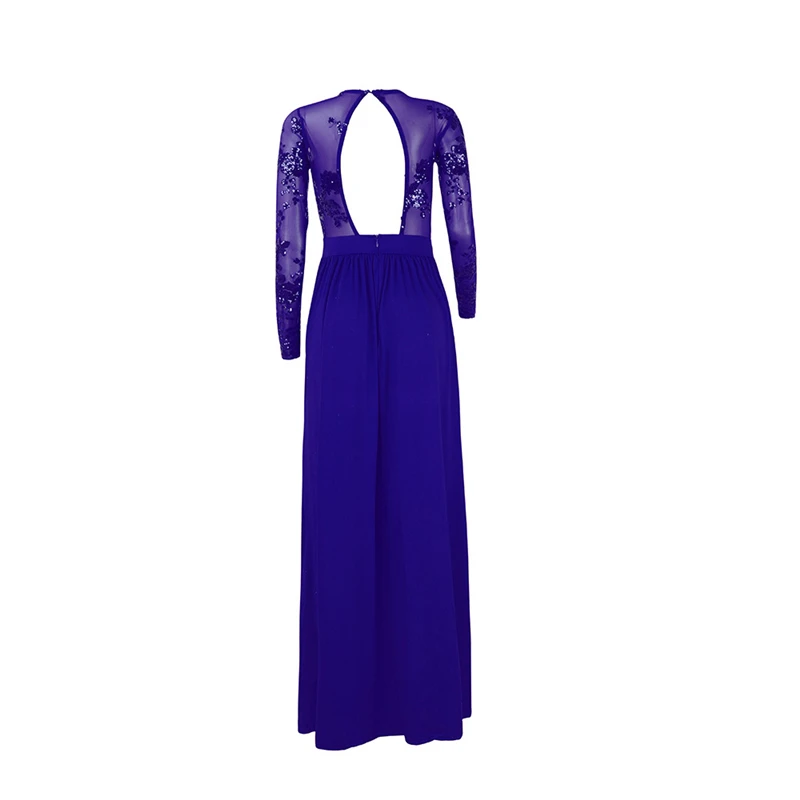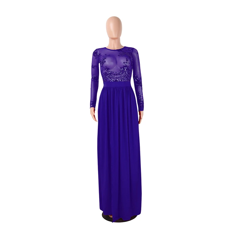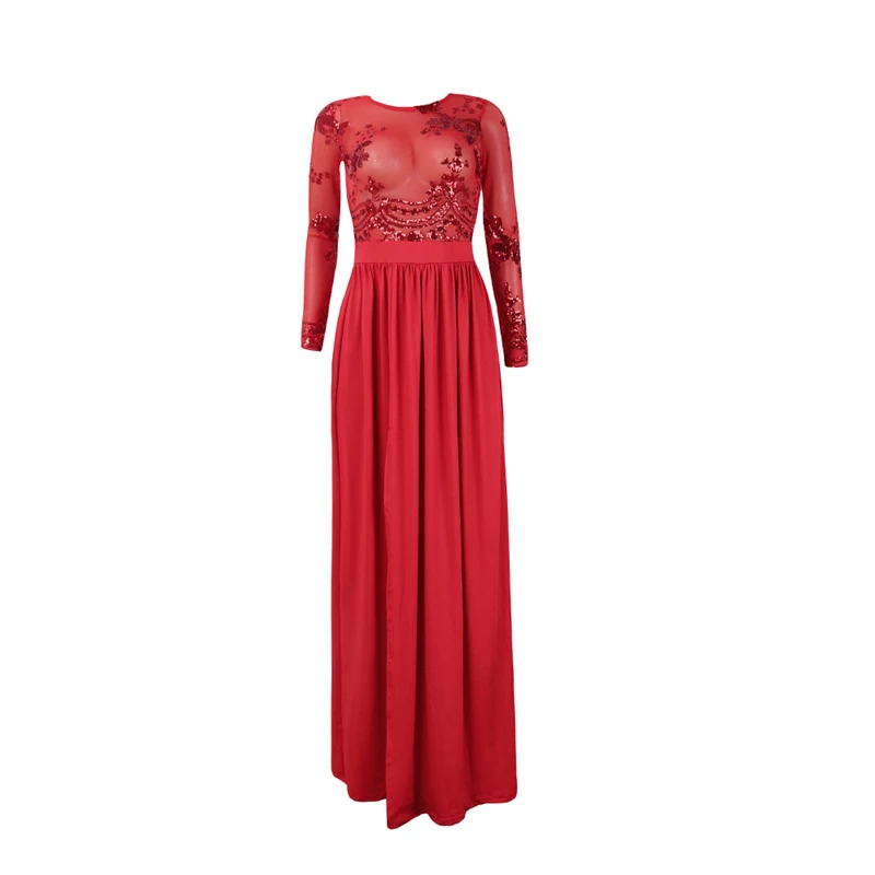 victoria’svogue Sexy Open Back See Through Sequins Night Club Dress O Neck Long Sleeve High Slit Maxi Evening Party Dresses Vestido