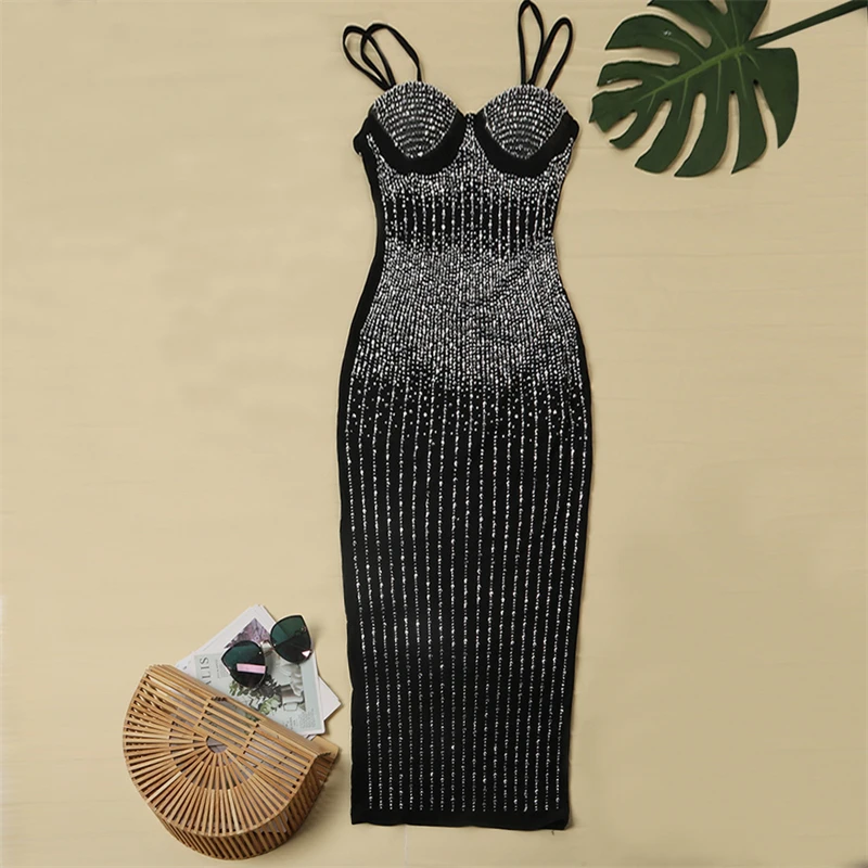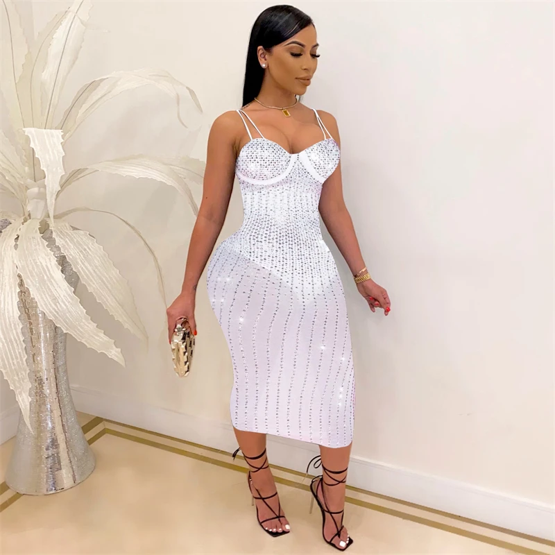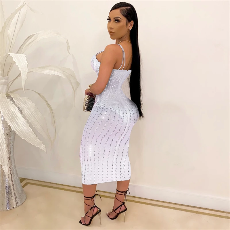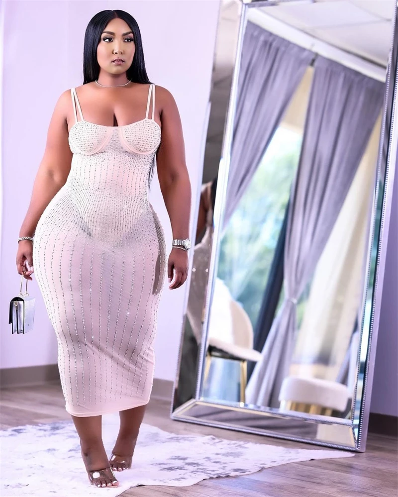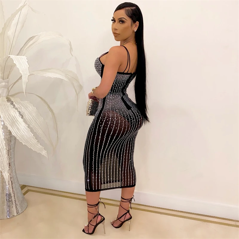victoria’svogue Diamonds Sheer Mesh Spaghetti Straps Midi Club Party Dress Plus Size S-5XL Bodysuit Lining Women Camis Vestidos