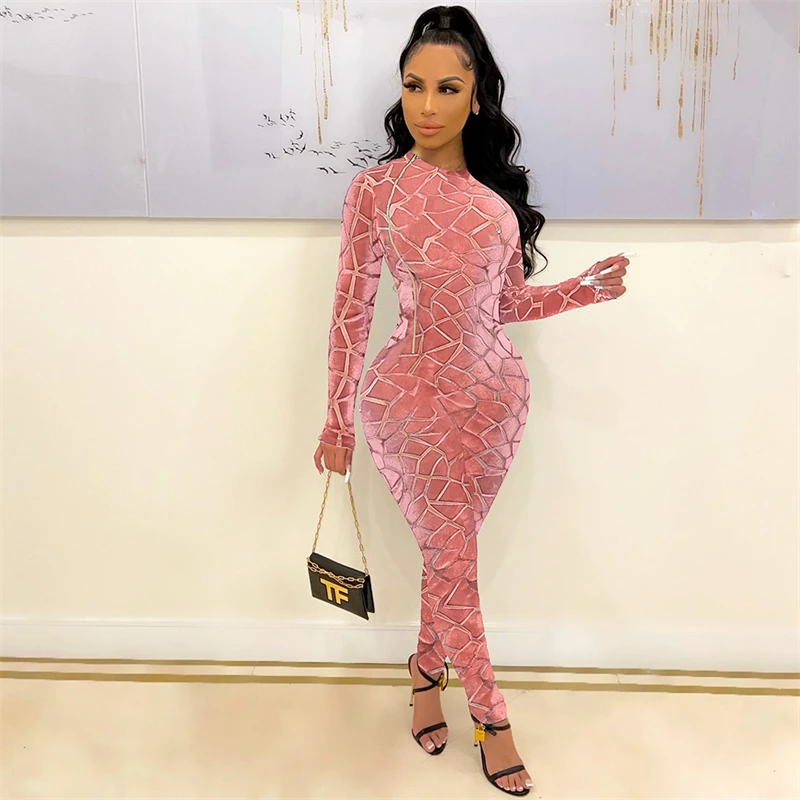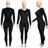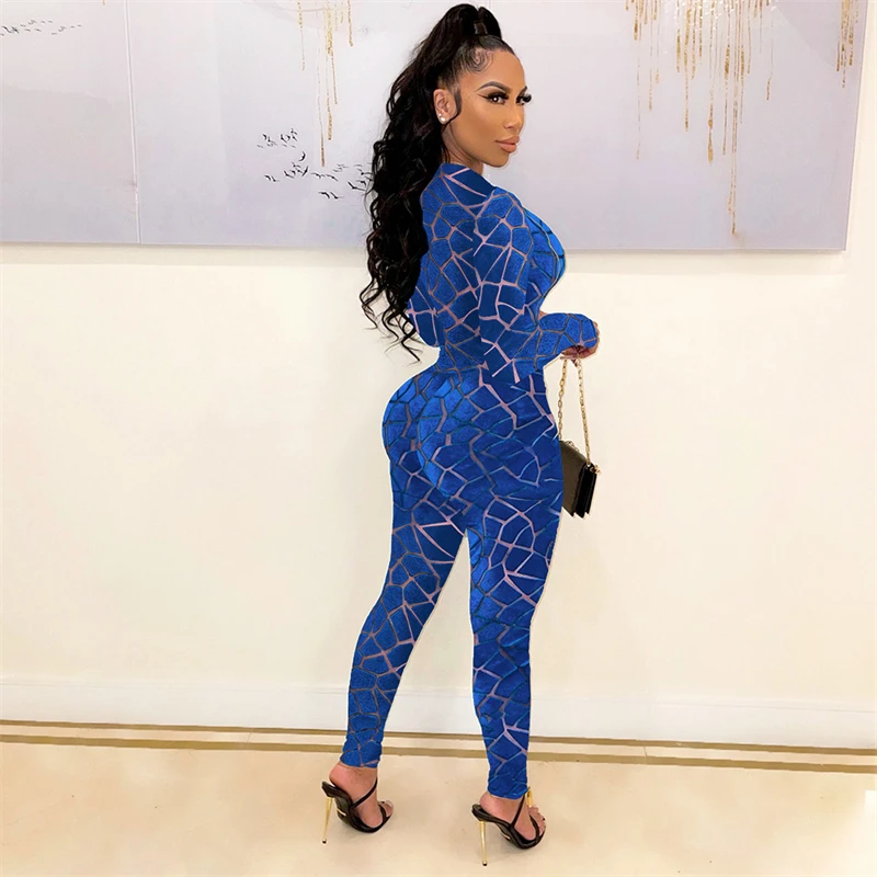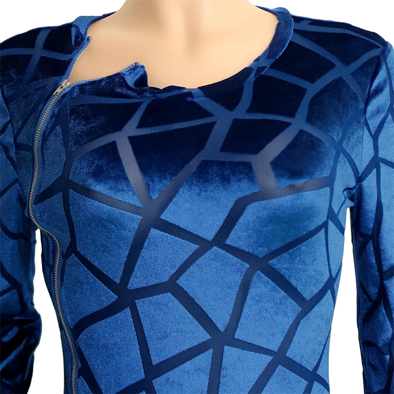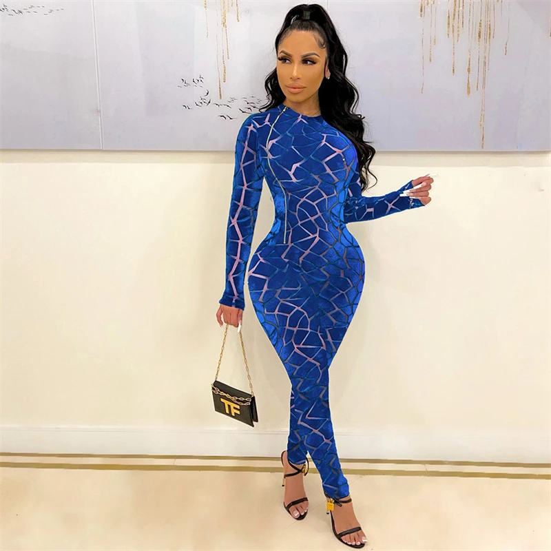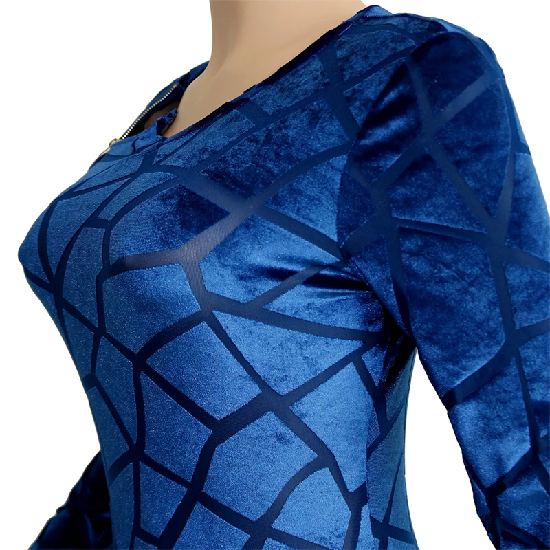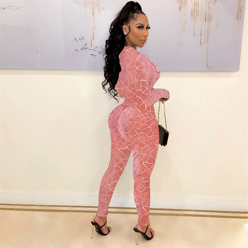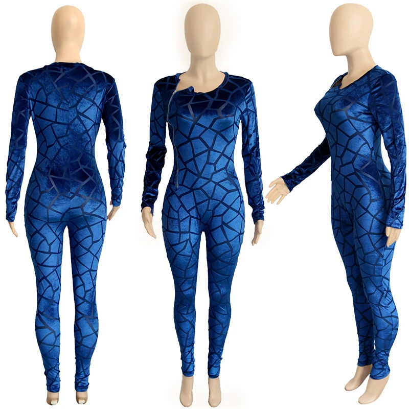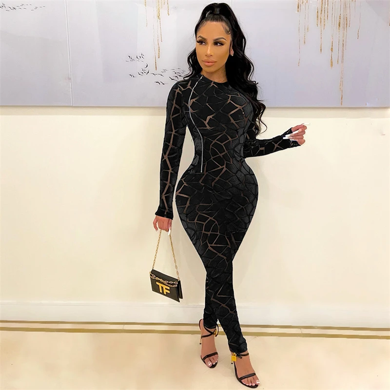 victoria’svogue Flocking Mesh Velvet Jumpsuit Women Sexy Zipper O Neck Long Sleeve Skinny Overalls Autumn Winter Casual Romper Outfits