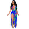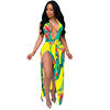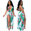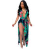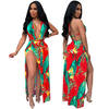 victoria’svogue Leaf Floral Print Women Sexy Summer Dress Deep V Neck Halter Backless High Slit Maxi Club Party Dress Beach Vestidos