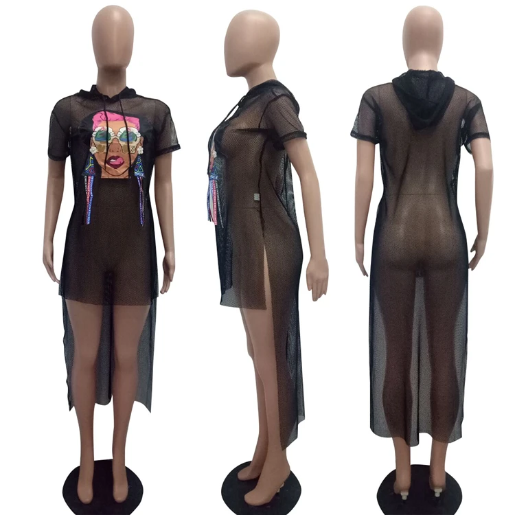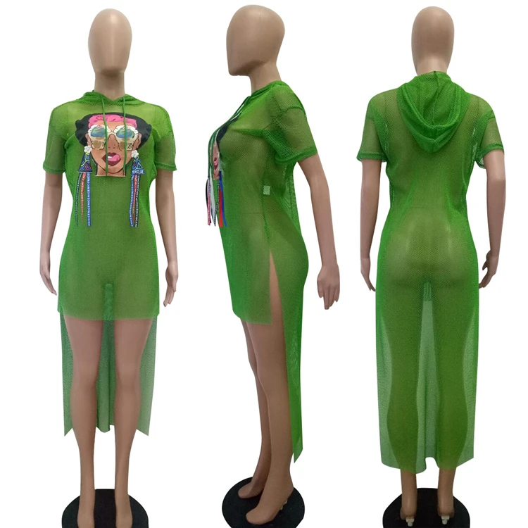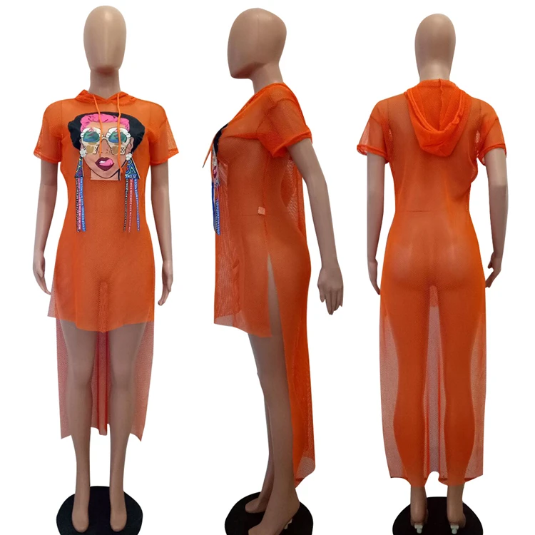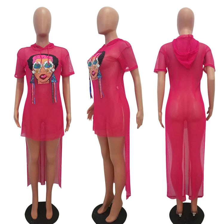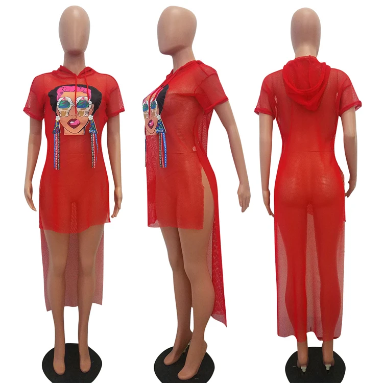victoria’svogue Plus Size S-3XL Grid Swallow Tails Beach Summer Dress Ice Cream Eyes Girl Print Women Hooded Short Sleeve Club Dresses