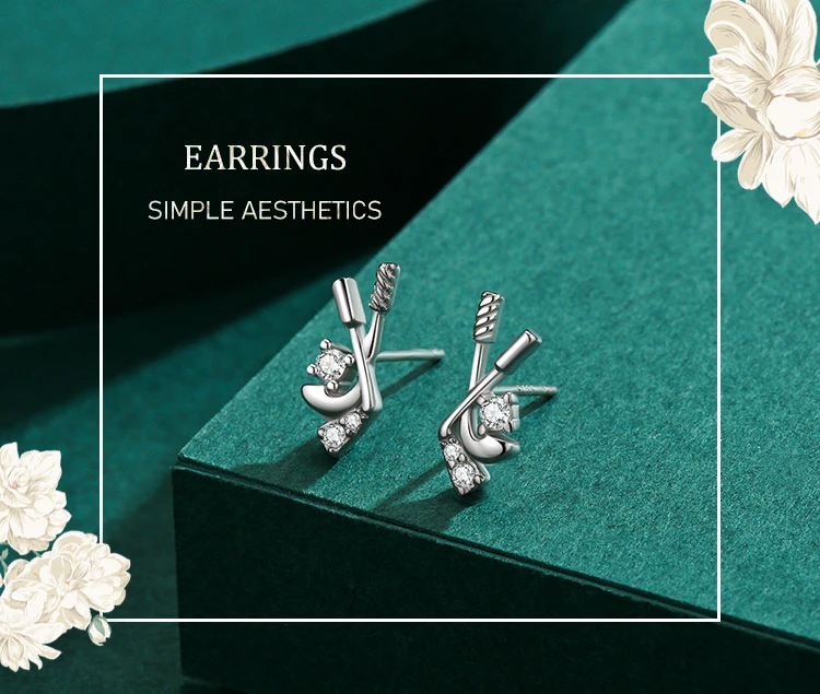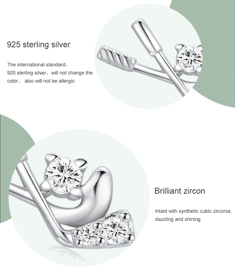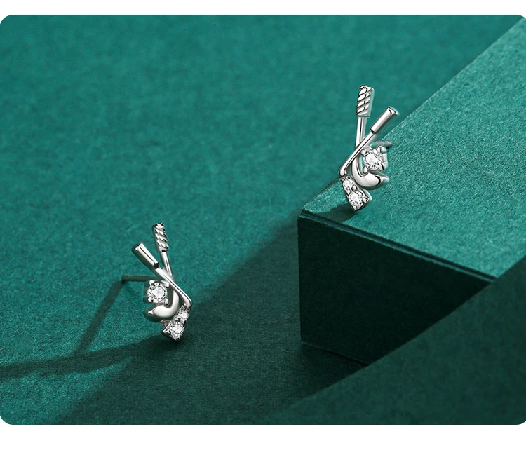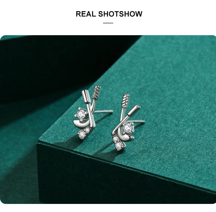 Victoria’s Vogue 100% 925 Sterling Silver Fashion Hockey modelling Clear Zircon Stud Earrings For Women Girls Party Accessories Jewelry