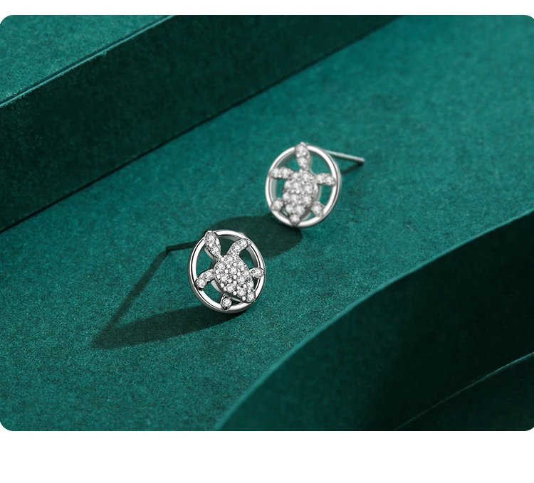 Victoria’s Vogue 925 Sterling Silver Lovely Sea Turtles Clear Zircon Animal Stud Earrings For Women Minimalist Fine Jewelry 2021 New Style
