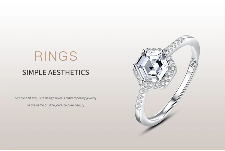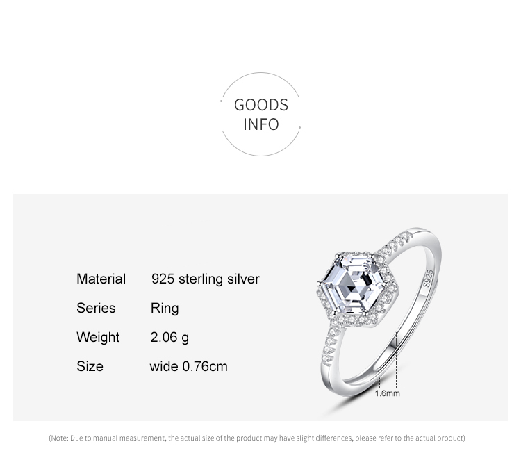 Victoria’s Vogue Fine Female Luxury Genuine 925 Sterling Silver Geometric Design Hexagon Rings For Women Classic Wedding Statement Jewelry