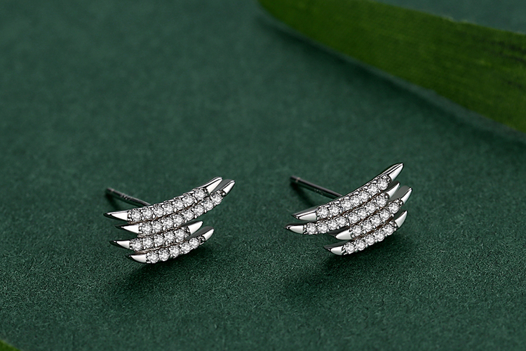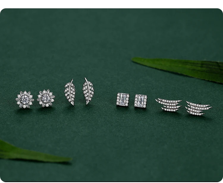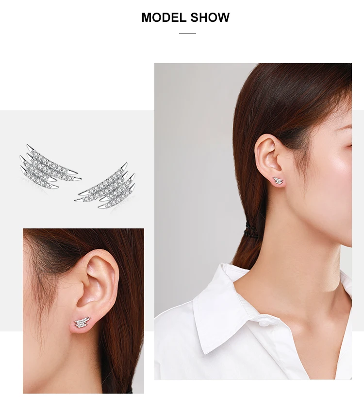Victoria’s Vogue Genuine 925 Sterling Silver Sparkling Zircon Geometric Line Exquisite Stud Earrings For Women Wedding Engagement Jewelry