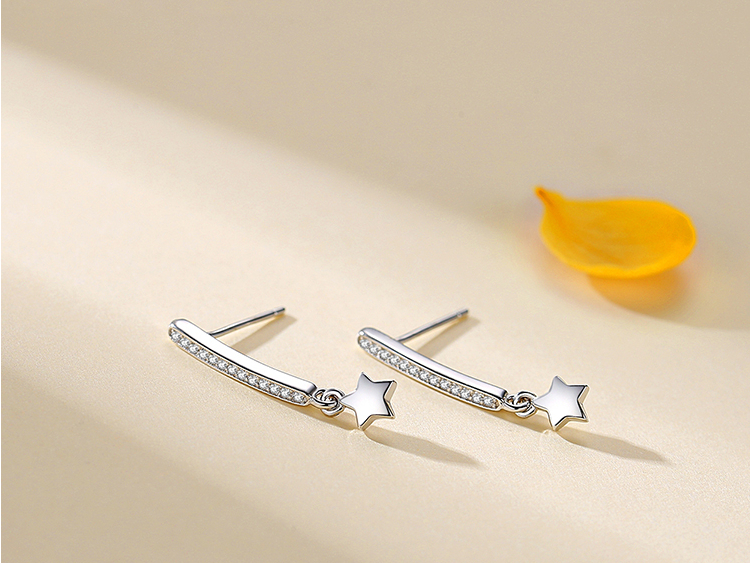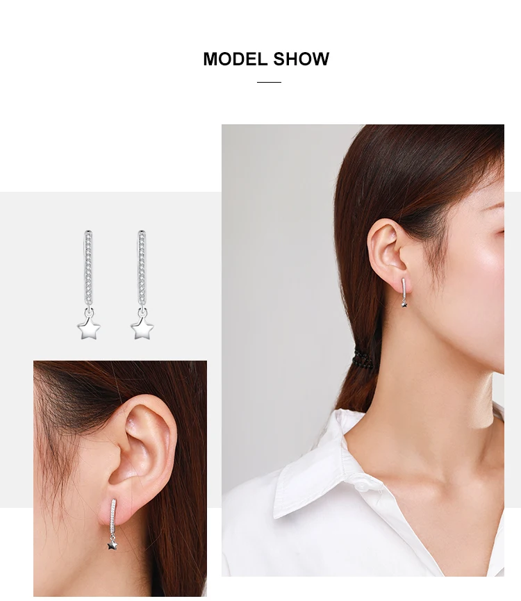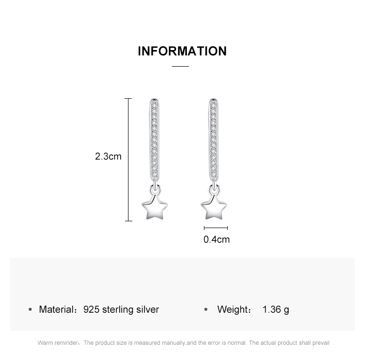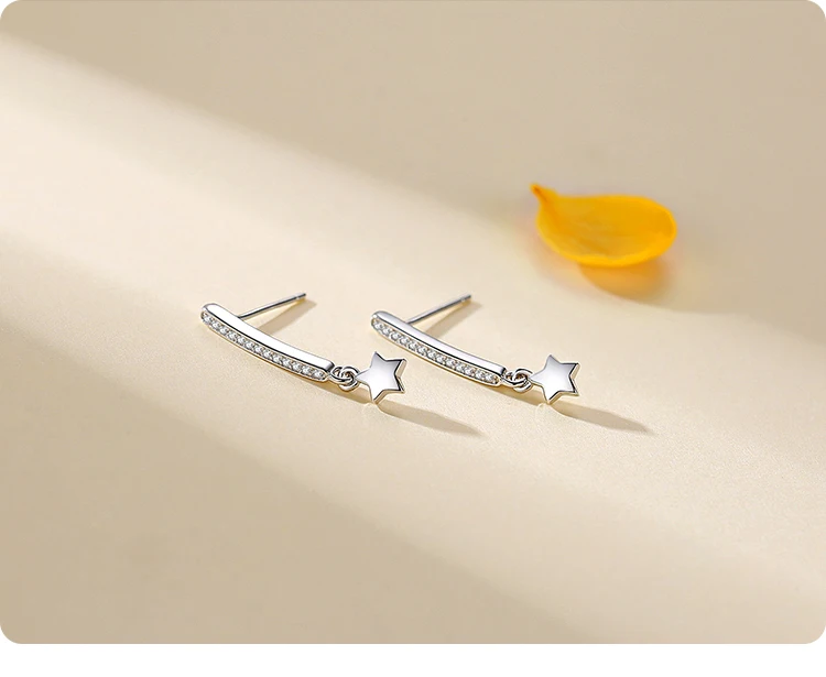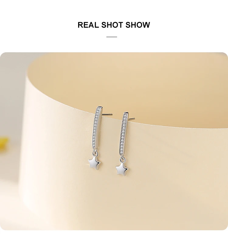 Victoria’s Vogue Top Quality Real 925 Sterling Silver Sparkling Zircon Stars Stud Earrings for Women Wedding Engagement Jewelry Gift