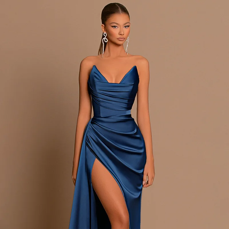 victoria’svogue Autumn new European and American fashion temperament sexy slim deep V-waist satin slit dress female