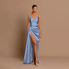 victoria’svogue Autumn new European and American fashion temperament sexy slim deep V-waist satin slit dress female