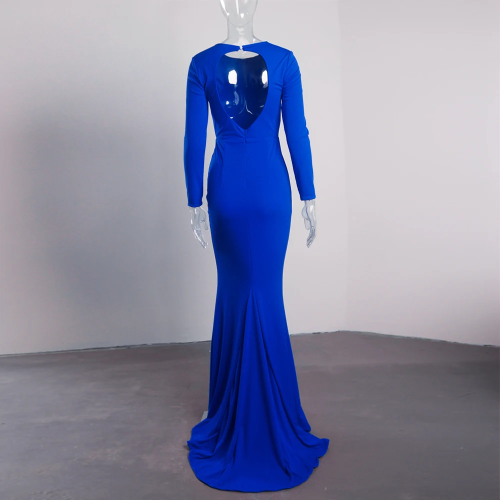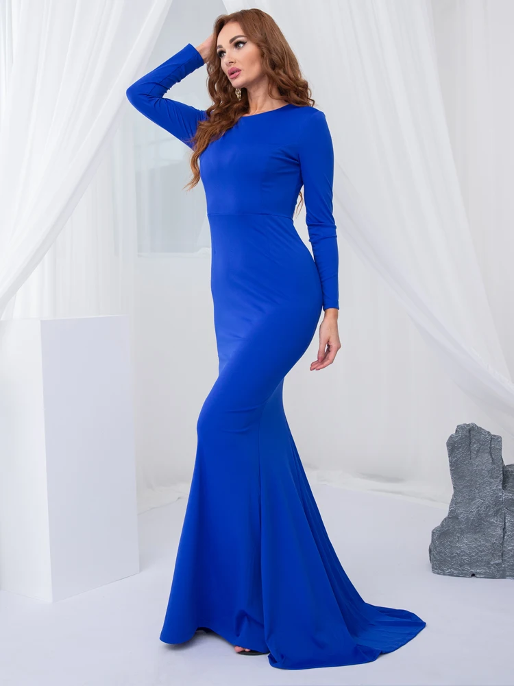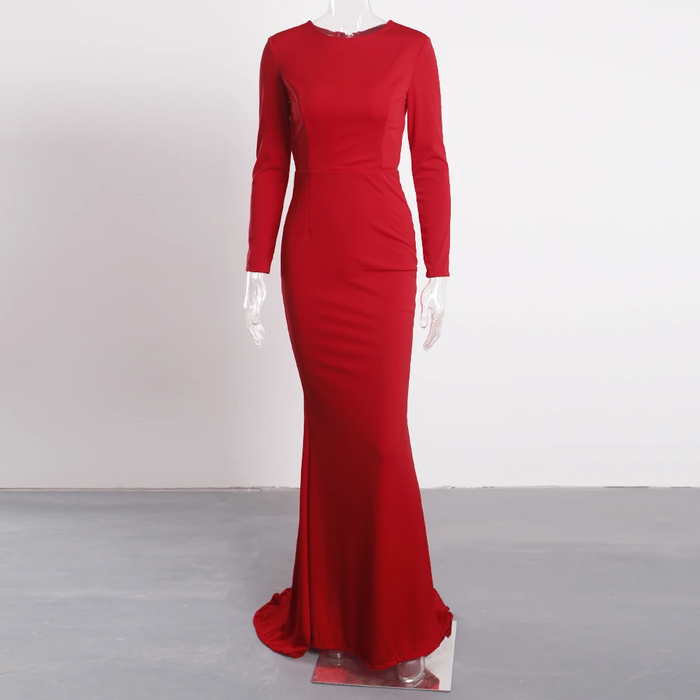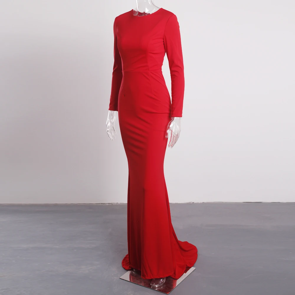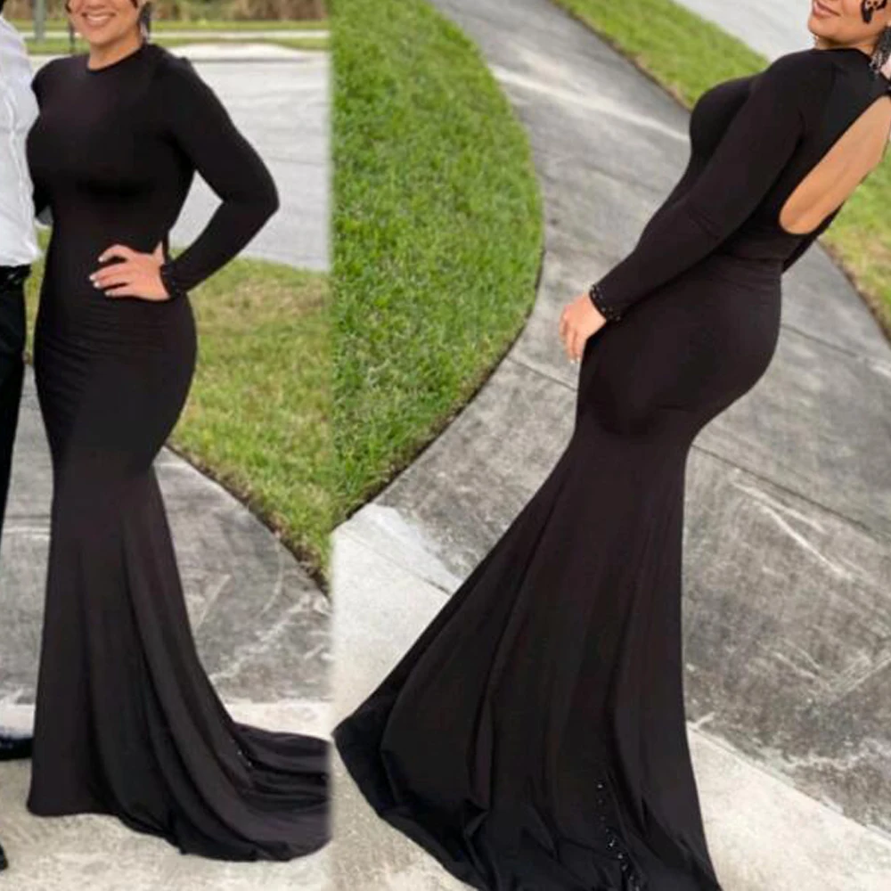 victoria’svogue 2021 Backless Full Sleeved Maxi Dress Evening Party Solid Mermaid Prom Long Gown