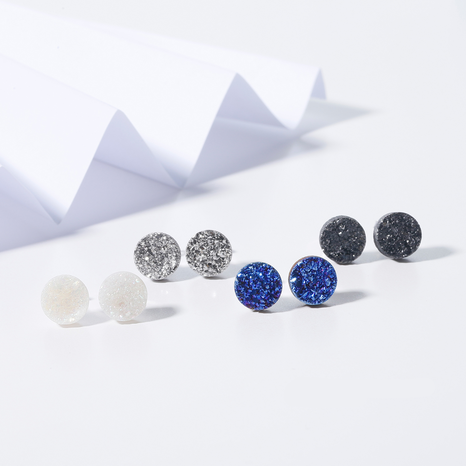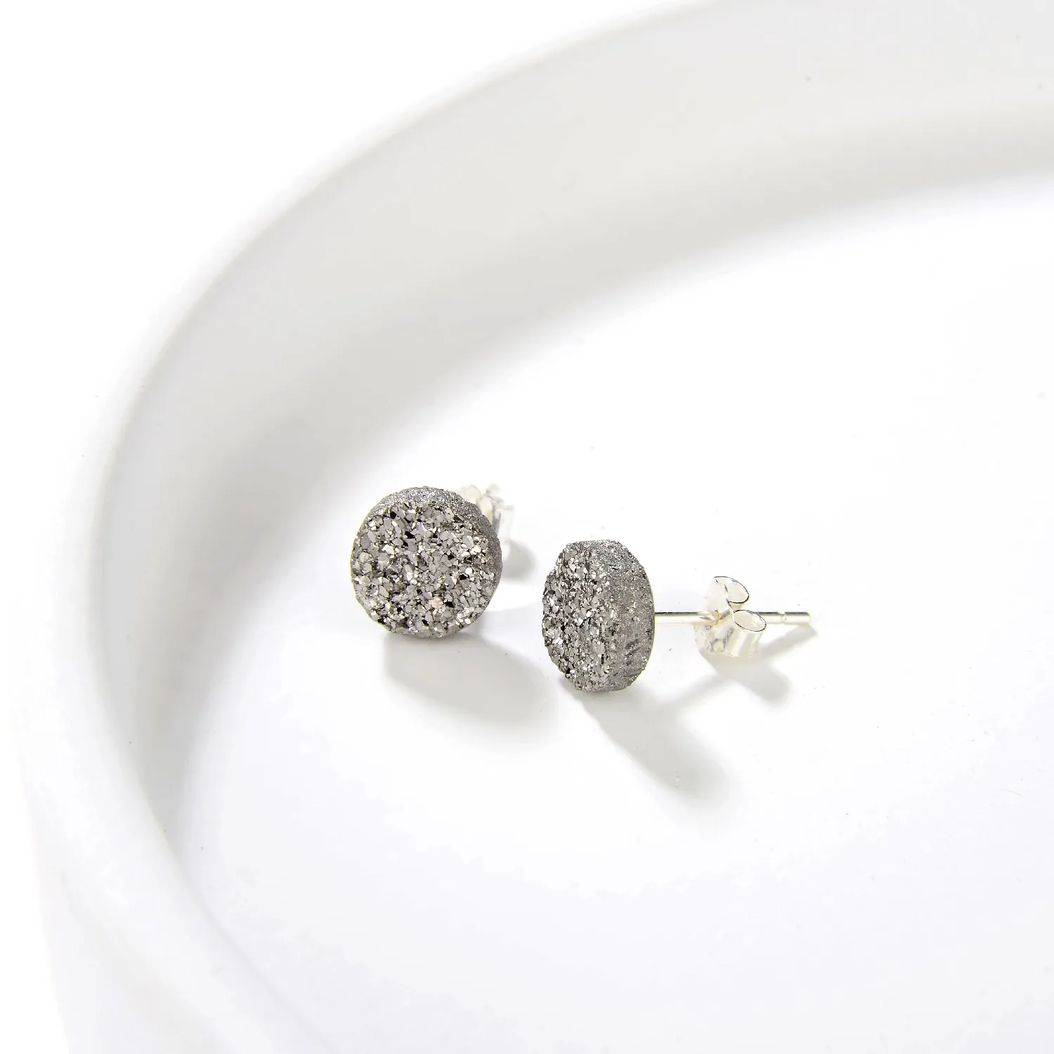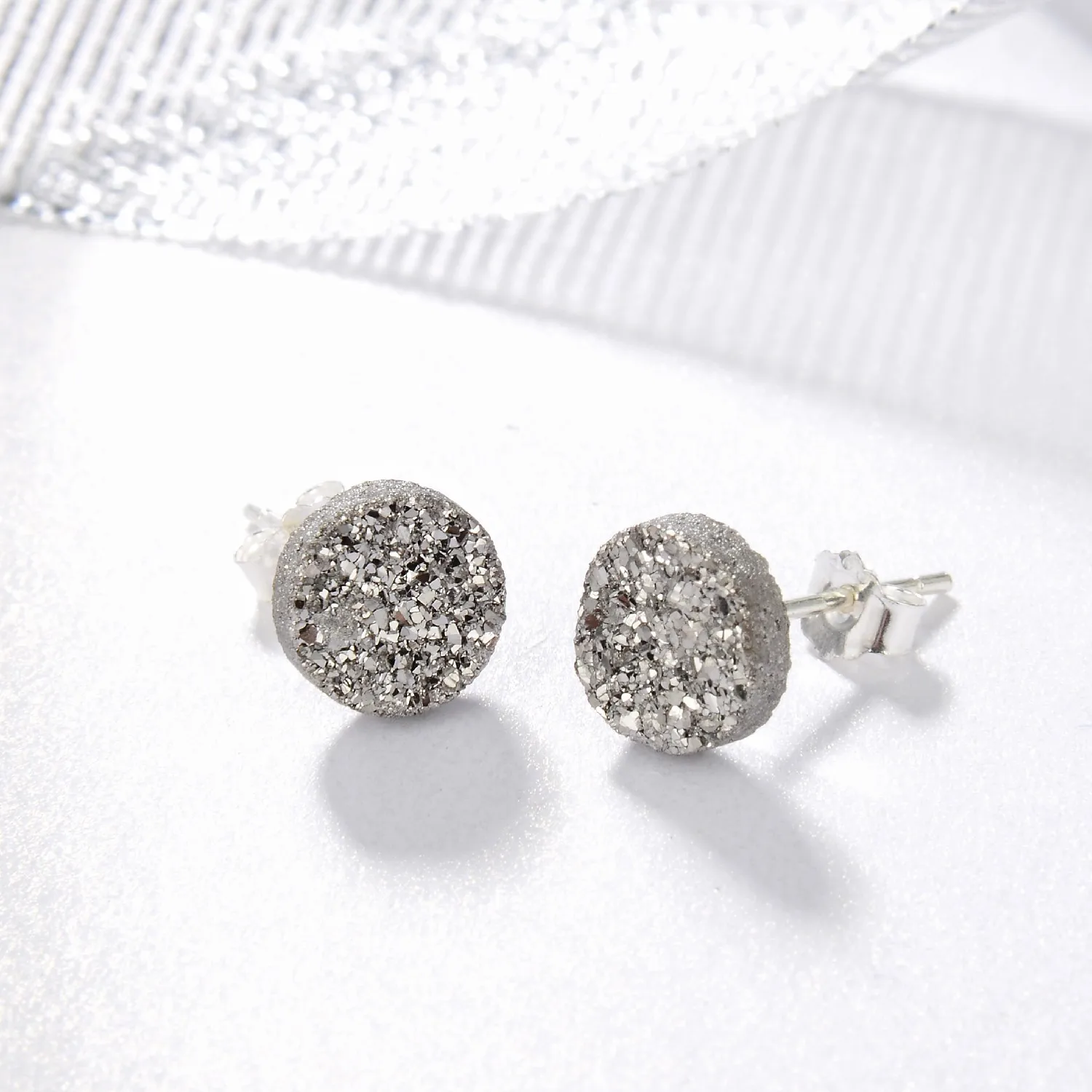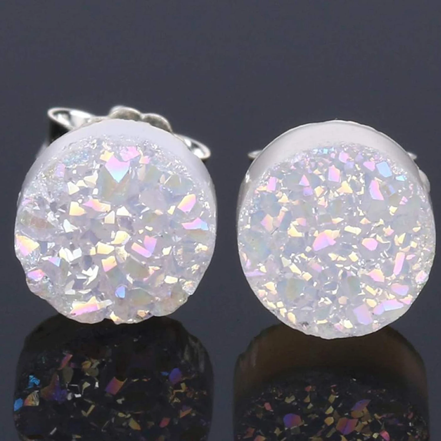 Victoria’s Vogue 925 Sterling Silver Druzy Stud Earrings 8mm Round Healing Agate Crystal Jewelry for Women or Girls