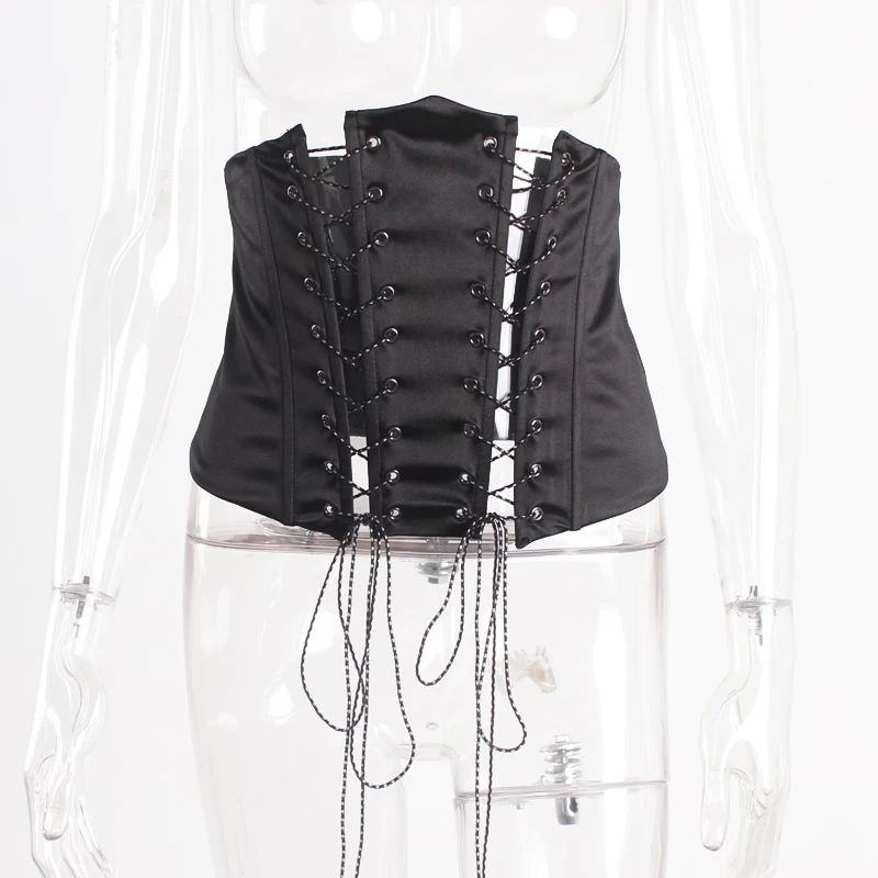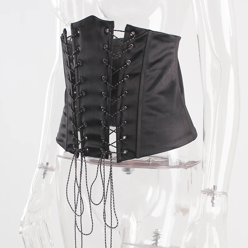 victoria’svogue 2021 Black Drawstring Satin Sexy Waist Corset Strap for Women Hollow Out Lace Up Cummerbunds Streetwear