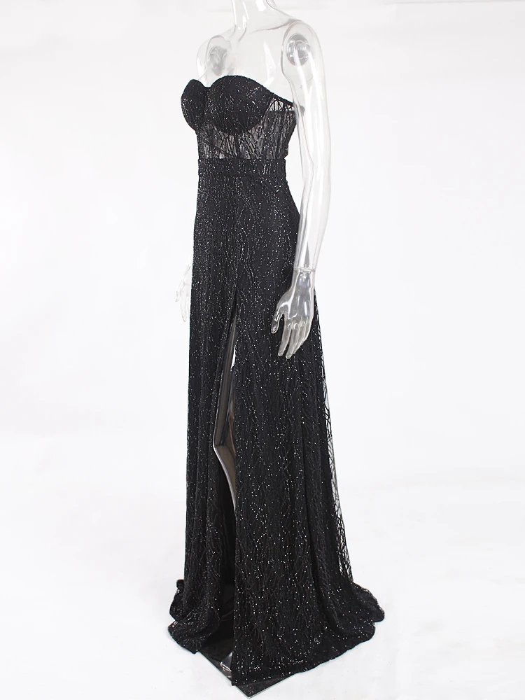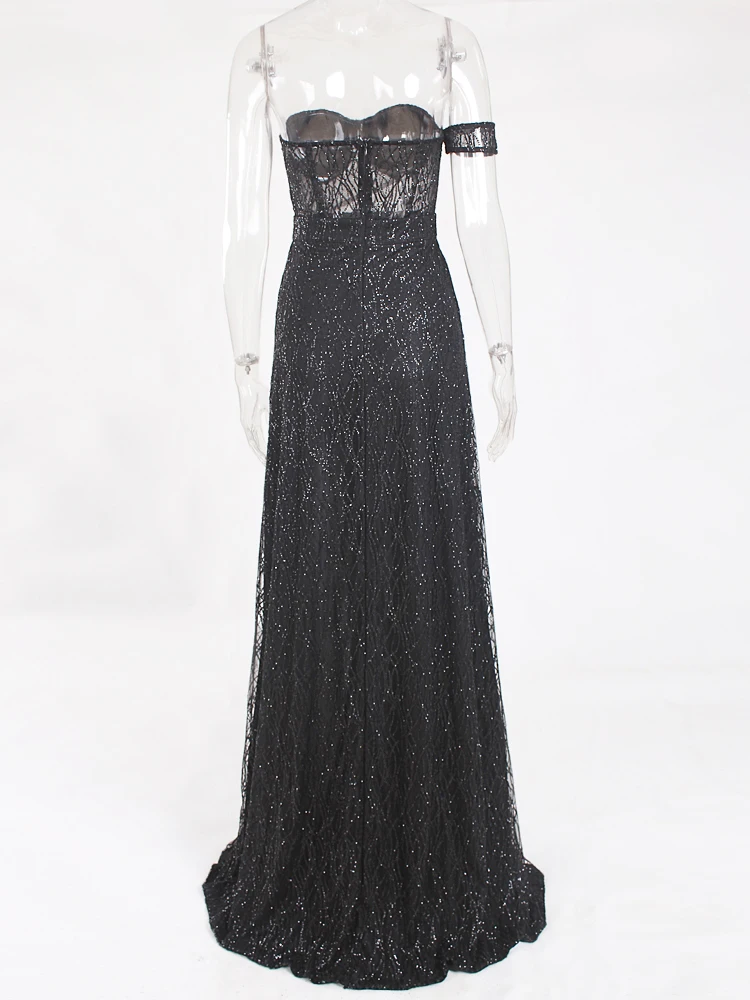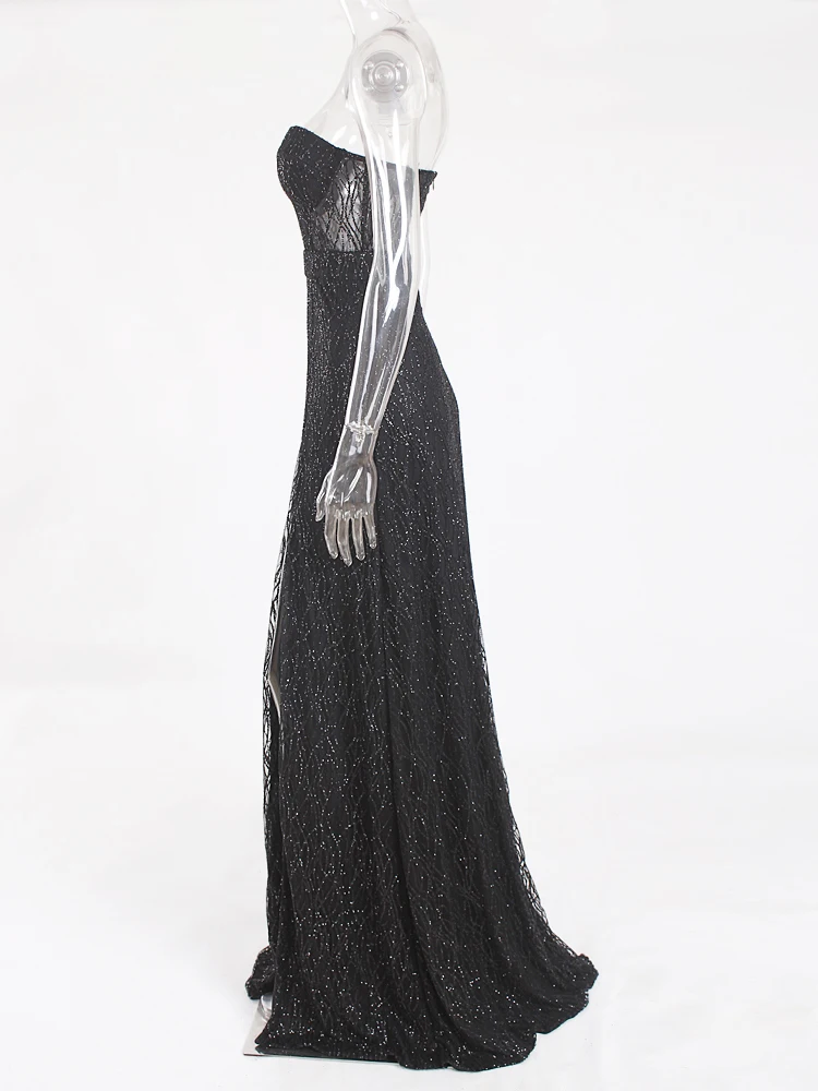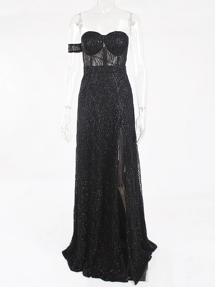 victoria’svogue 2021 Black Long Party Dress Gown Hollow Out Off the shoulder Split Side Strapless Backless Maxi Dress