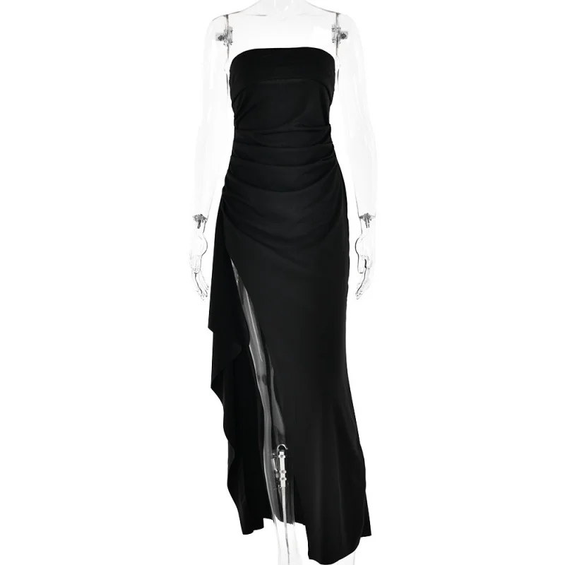 Victoria’s Vogue Black Off-shoulder Strapless Backless High Split Maxi Dress For Women Sleeveless Bodycon Club Party Evening Long Dress Clothes