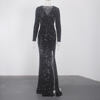 victoria’svogue 2021 Black Sequined Velvet Maxi Dress Split V Neck Full Sleeved Stretchy Evening Party Gown