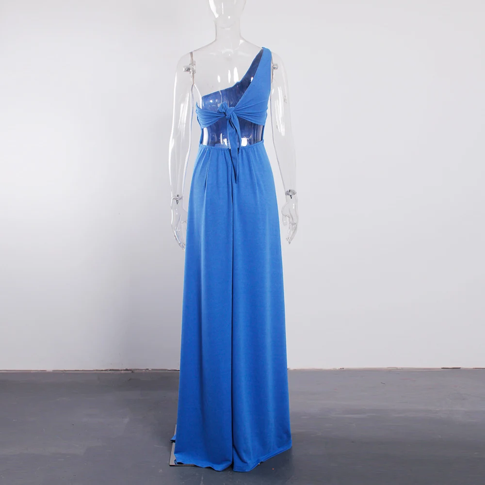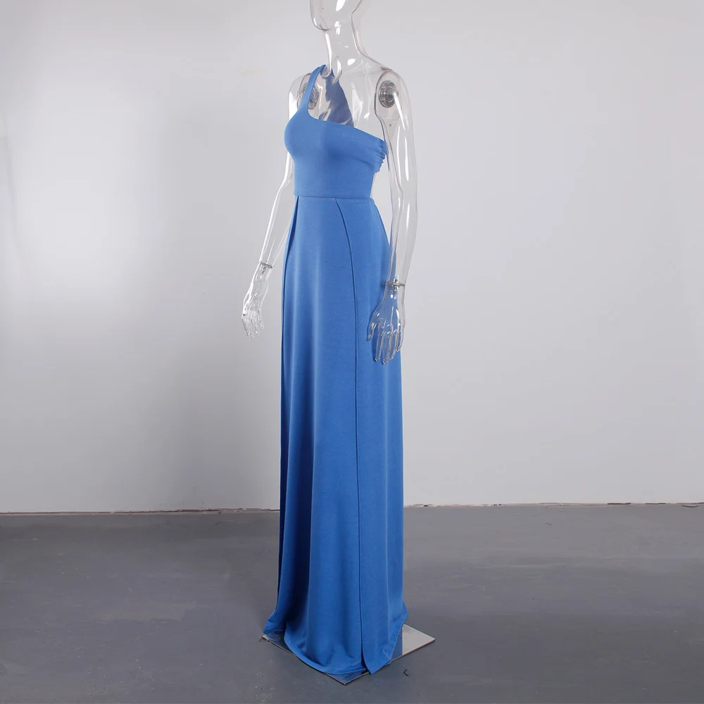 victoria’svogue 2021 Blue One Shoulder Summer Long Dress Double Slits Backless Lace Up Night Club Evening Party