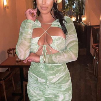 victoria’s vogue Print Mini Dress For Woman Hollow Out Lace Up Long Sleeve Green Women Holiday Sexy Bodycon Fashion Autumn Dresses 2021