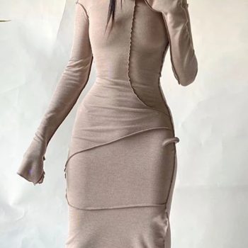 Victoria’s Vogue Women’s Dresses Streetwear Fashion Long Sleeve Half turtleneck Maxi Dress Solid Sexy See Through Bodycon Dresses Clothing