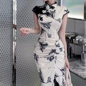 Victoria’s Vouge 2025 chinese vintage dress sleeveless cheongsam flower print party evening dress traditional nightclub qipao sexy dress vestido