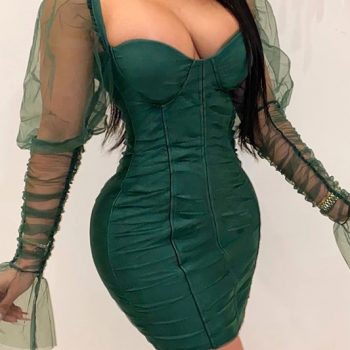 victoria’s vogue Sexy Mesh Puff Sleeve Party Dress Women Low Collar Backless Patchwork Mini Dress Nightclub Spring Vestidos