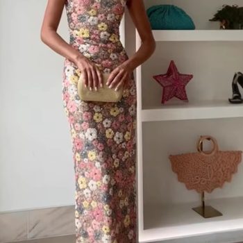 Victoria’s Vogue Floreal Print Long Dress For Women Gown Summer New Spaghetti Strap Sleeveless Backless Bodycon Sexy Midi Dress Elegant