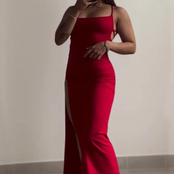 Victoria’s Vouge Sexy Backless Lace Up Long Dress Women Split Sleeveless Bodycon Party Club Evening Dresses High Street Female Suspender Robes