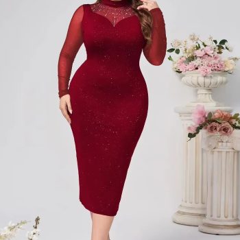 Victoria’s Vogue Plus Size Plus Size Long Sleeve Glitter Slim Fit Sexy Dress Evening Gown New Style Women’s Fashionable Maxi Dress Party Wear