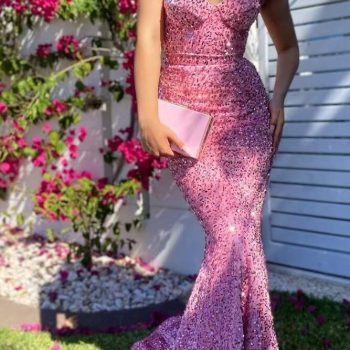 Victoria’s Vogue New Women Sequin Evening Dress Elegant V Neck Beaded Party Bodycon Maxi Dress
