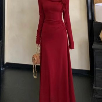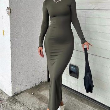 Victoria’s Vouge New Tight Women’s Autumn Dress With Long Sleeves Robe Slim Women’s Long Skirt Basic Solid Color Autumn O-neck Party Vest Robe