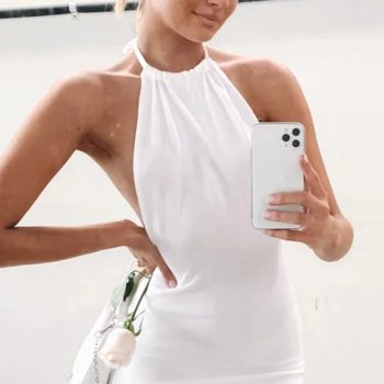 Victoria Vogue Women Sleeveless Backless Mini Skirt Dress 2023 Y2K Summer Bodycon Hang Neck Elegant Sexy Outfits Ladies Party Club Sundress