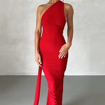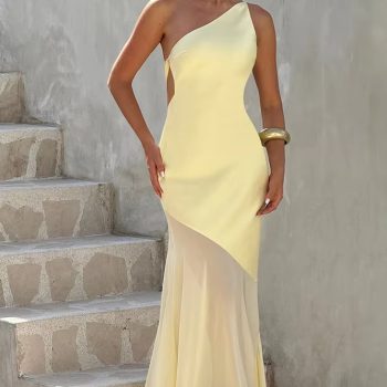 Victoria’s Vogue One Shoulder Backless Sexy Maxi Dress Women Gown Fashion Patchwork Sleeveless Bodycon Club Party Long Dress Elegant