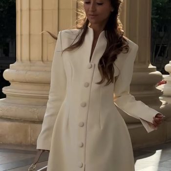 Victoria’s Vogue White Single Breasted A-line Mini Dress Women Elegant Solid Color Waist Pleated Short Dresses Daily Chic Evening Dinner Gowns