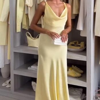 Victoria’s Vogue Women’s Solid Vacation Style Satin Texture Backless V-neck Midi Dress Summer Female Elegant Sexy Lace-up Strap Dress